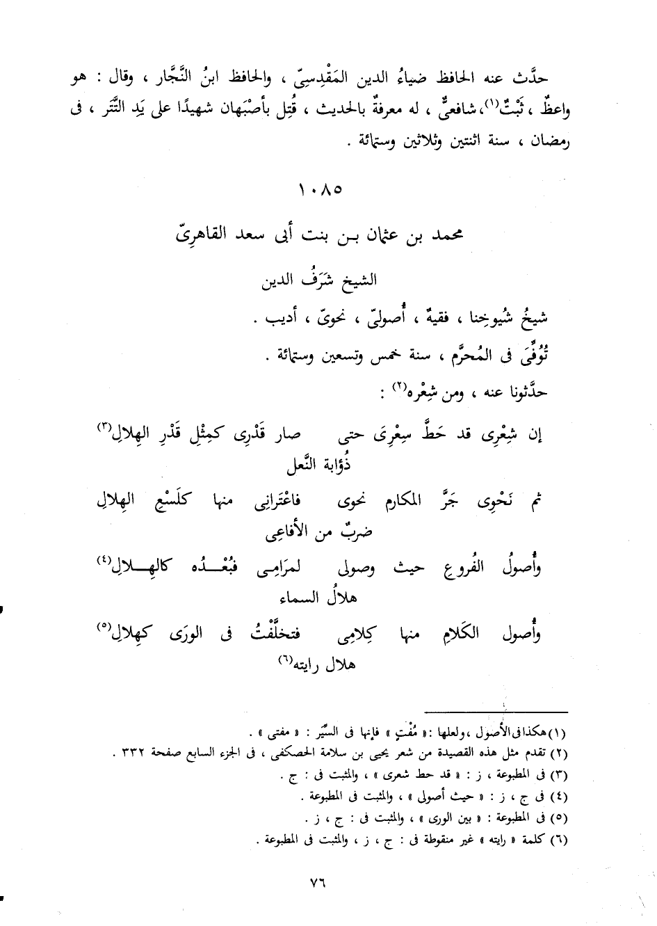 1085 - مُحَمَّد بن عُثْمَان بن بنت أبي سعد القاهري الشَّيْخ شرف الدّين