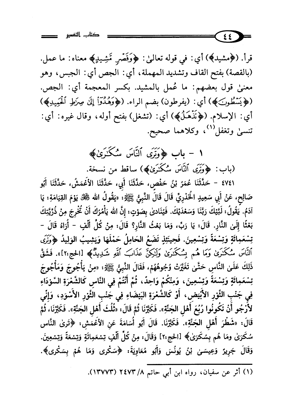 1 - باب {وَتَرَى النَّاسَ سُكَارَى}