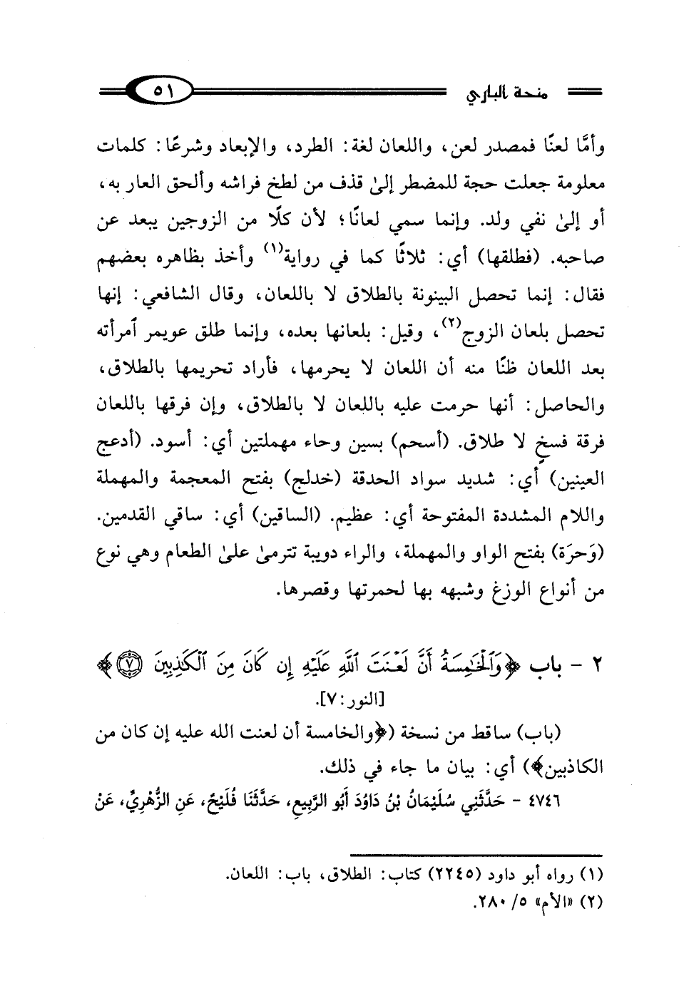 2 - باب {وَالْخَامِسَةُ أَنَّ لَعْنَتَ اللَّهِ عَلَيْهِ إِنْ كَانَ مِنَ الْكَاذِبِينَ (7)} [النور: 7].