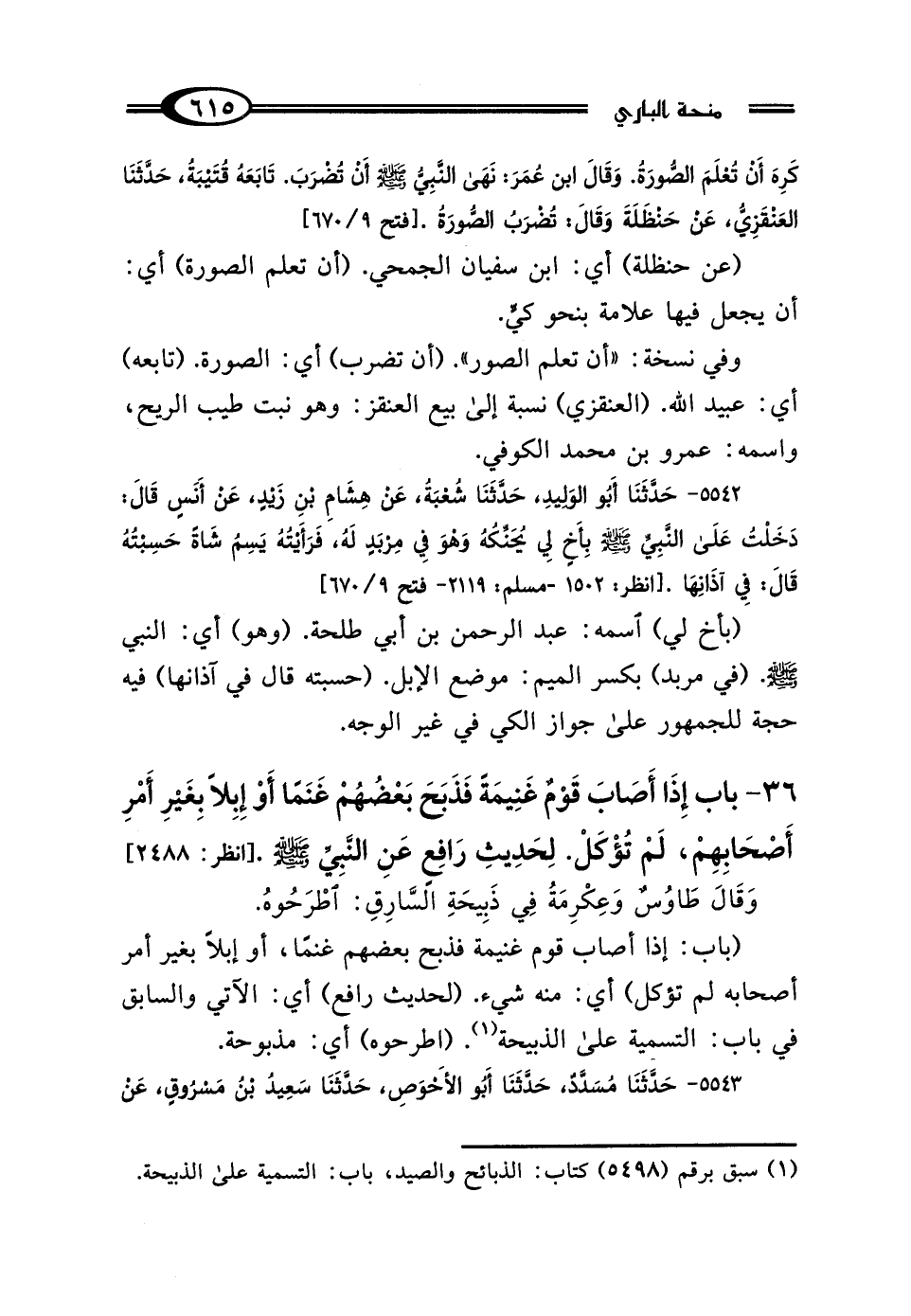 وفي نسخة: "أن تعلم الصور". (أن تضرب) أي: الصورة. (تابعه) أي: عبيد الله. (العنقزي) نسبة إلى بيع العنقز: وهو نبت طيب الريح، واسمه: عمرو بن محمد الكوفي.