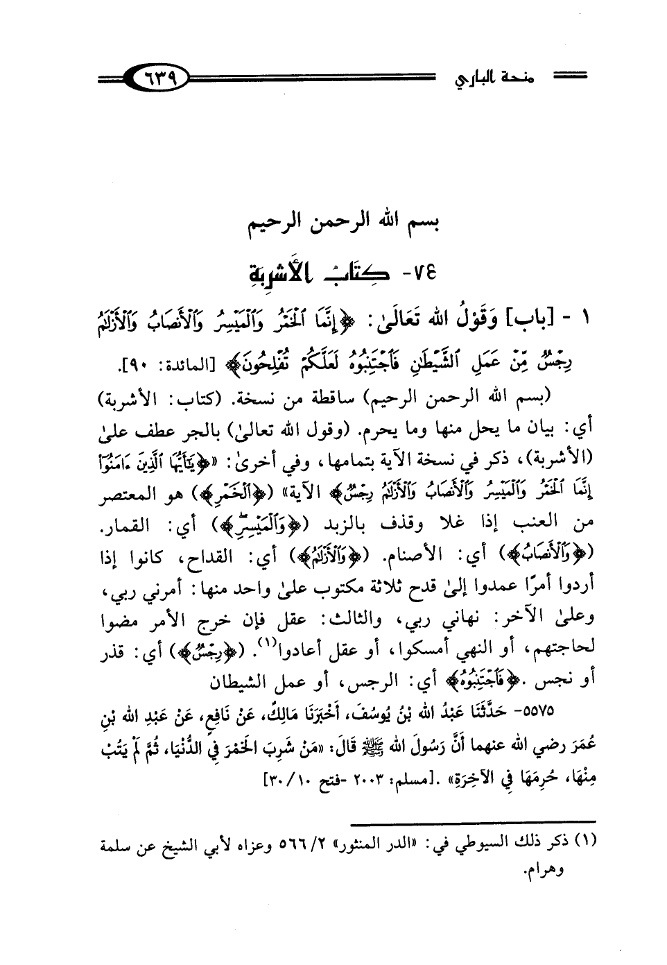 1 - [باب] وَقَوْلِ اللَّهِ تَعَالى: {إِنَّمَا الخَمْرُ وَالمَيْسِرُ وَالأَنْصَابُ وَالأَزْلامُ رِجْسٌ مِنْ عَمَلِ الشَّيْطَانِ، فَاجْتَنِبُوهُ لَعَلَّكُمْ تُفْلِحُونَ} [المائدة: 90]