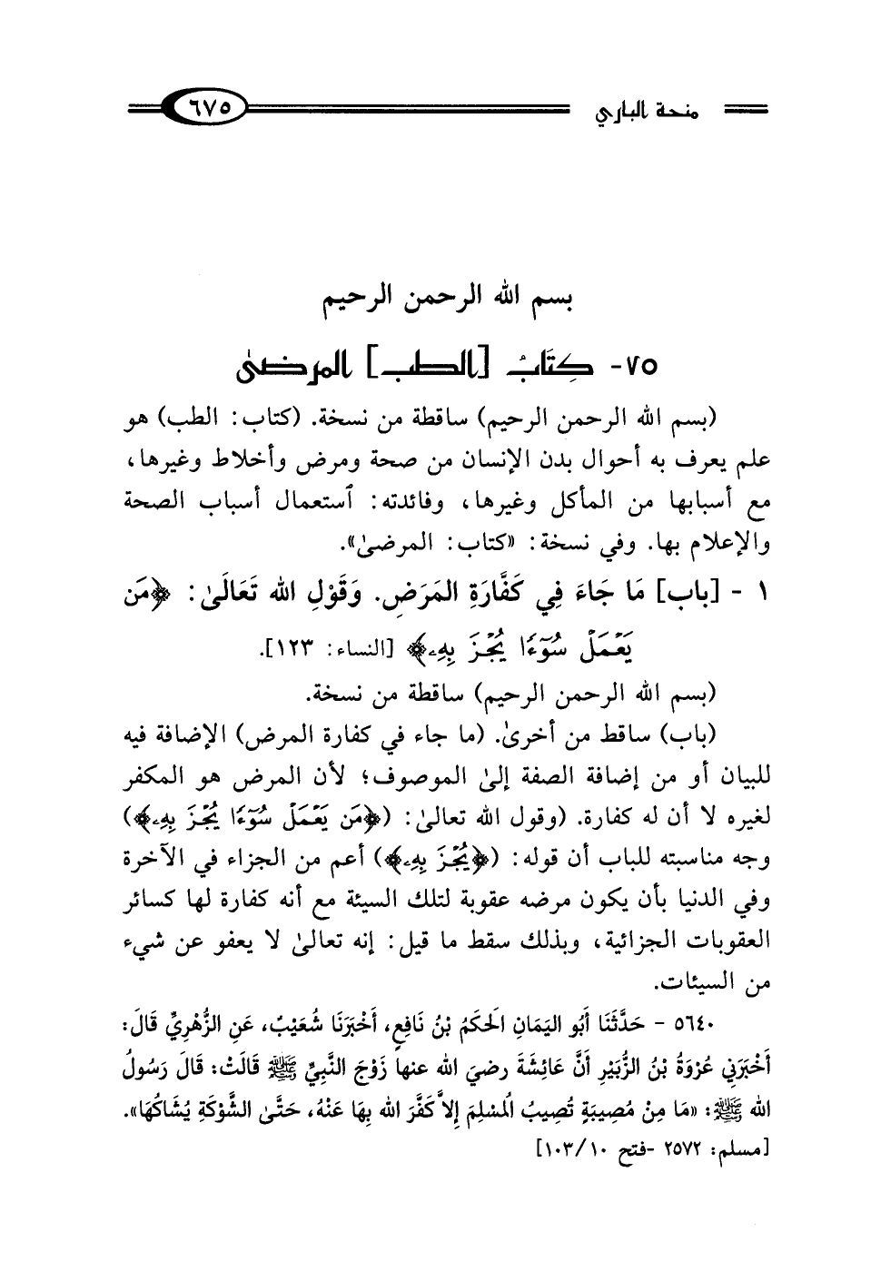 75 - كِتَابُ [الطب] المَرْضَى