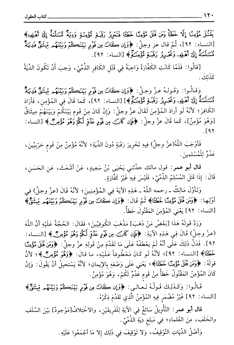 يقتل مؤمنا إلا خطئا ومن قتل مؤمنا خطئا فَتَحْرِيرُ رَقَبَةٍ مُؤْمِنَةٍ وَدِيَةٌ مُسَلَّمَةٌ إِلَى أَهْلِهِ) النِّسَاءِ 92 ثُمَّ قَالَ عَزَّ وَجَلَّ (وَإِنْ كَانَ من قوم بينكم وبينهم ميثق فَدِيَةٌ مُسَلَّمَةٌ إِلَى أَهْلِهِ وَتَحْرِيرُ رَقَبَةٍ مُؤْمِنَةٍ) النِّسَاءِ 92