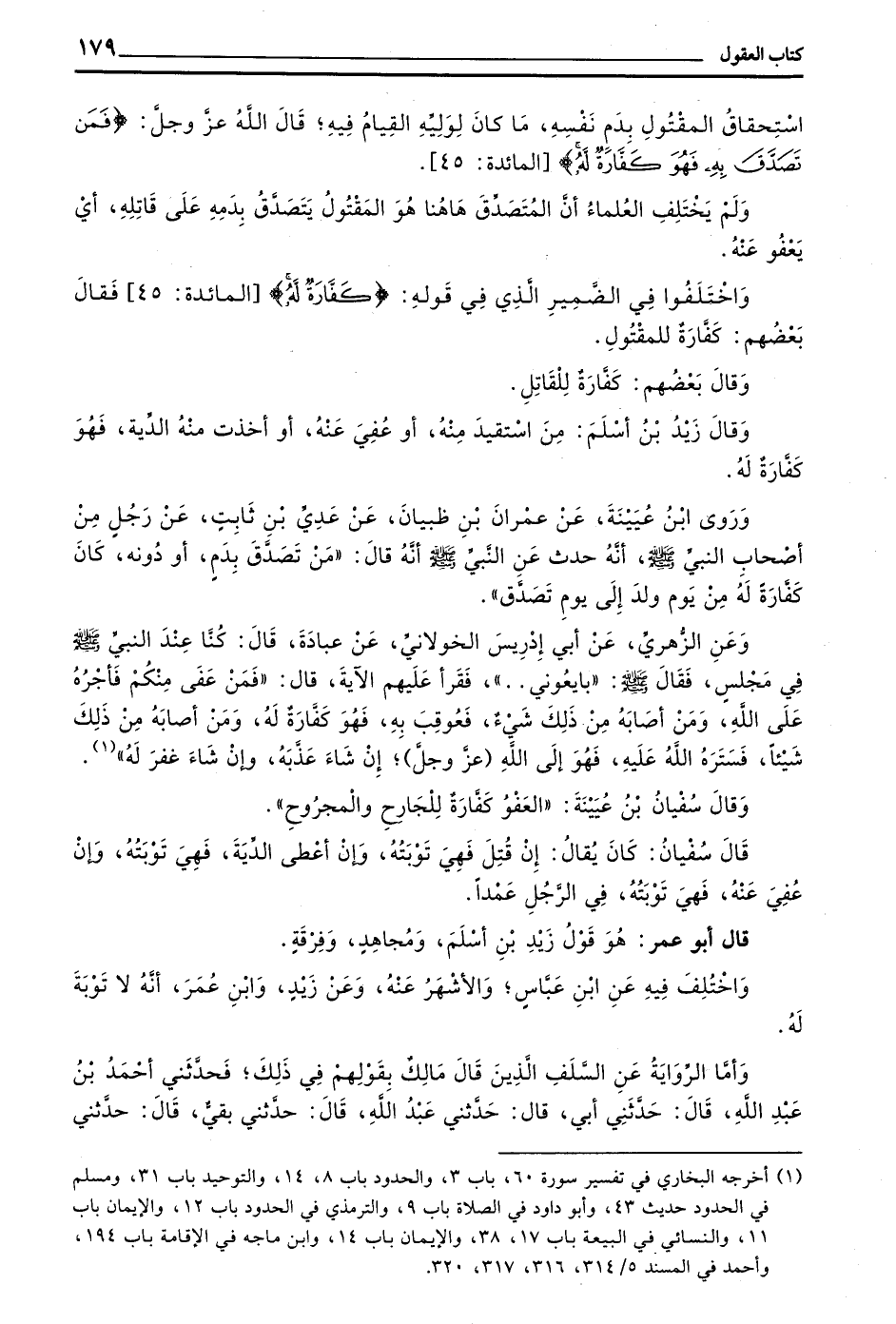اسْتِحْقَاقُ الْمَقْتُولِ بِدَمِ نَفْسِهِ مَا كَانَ لِوَلِيِّهِ الْقِيَامُ فِيهِ قَالَ اللَّهُ عَزَّ وَجَلَّ (فَمَنْ تَصَدَّقَ بِهِ فَهُوَ كَفَّارَةٌ لَهُ) الْمَائِدَةِ 45