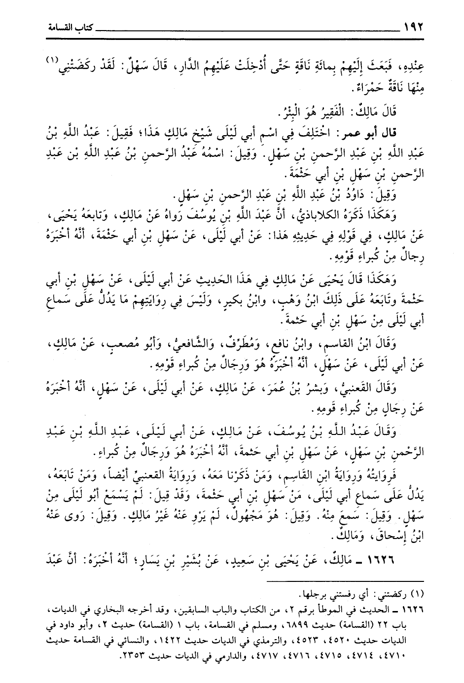 وهكذا قَالَ يَحْيَى عَنْ مَالِكٍ فِي هَذَا الْحَدِيثِ عَنْ أَبِي لَيْلَى عَنْ سَهْلِ بْنِ أَبِي حثمة وتابعه على ذلك بن وهب وبن بُكَيْرٍ وَلَيْسَ فِي رِوَايَتِهِمْ مَا يَدُلُّ عَلَى سَمَاعِ أَبِي لَيْلَى مِنْ سَهْلِ بْنِ أَبِي حثمة