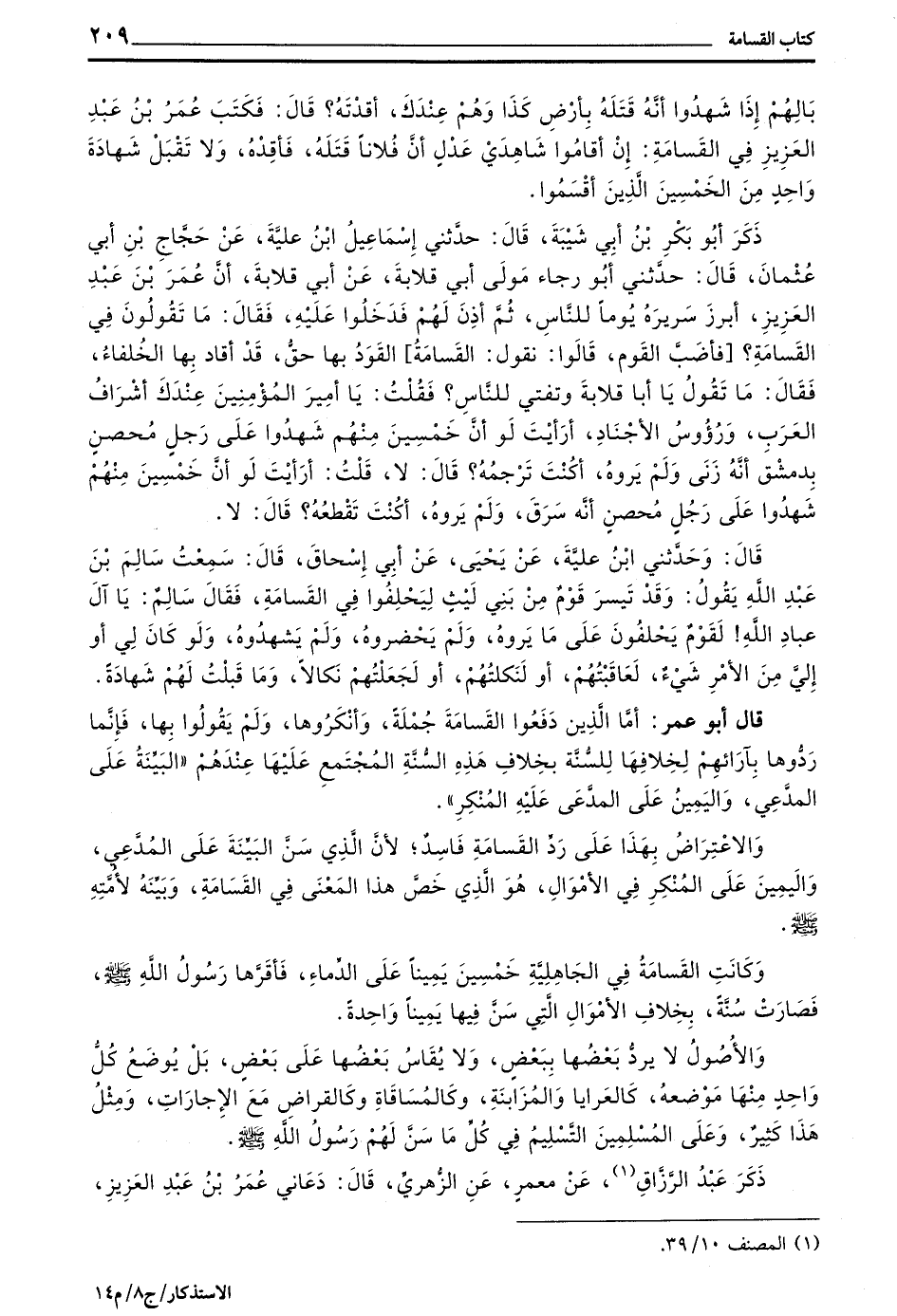قال وحدثني بن عُلَيَّةَ عَنْ يَحْيَى عَنْ أَبِي إِسْحَاقَ قَالَ سَمِعْتُ سَالِمَ بْنَ عَبْدِ اللَّهِ يَقُولُ وَقَدْ تَيَسَّرَ قَوْمٌ مِنْ بَنِي لَيْثٍ لِيَحْلِفُوا فِي الْقَسَامَةِ فَقَالَ سَالِمٌ يَا آلَ عِبَادِ اللَّهِ! لقوم يحلفون على ما يَرَوْهُ وَلَمْ يَحْضُرُوهُ وَلَمْ يَشْهَدُوهُ وَلَوْ كَانَ لِي أَوْ إِلَيَّ مِنَ الْأَمْرِ شَيْءٌ لَعَاقَبْتُهُمْ أَوْ لَنَكَلْتُهُمْ أَوْ لَجَعَلْتُهُمْ نَكَالًا وَمَا قَبِلْتُ لَهُمْ شَهَادَةً