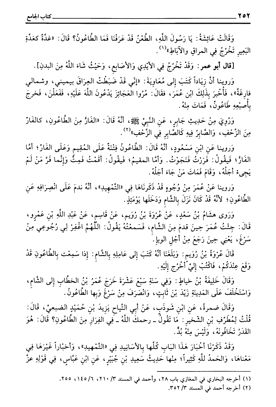 وَرَوَيْنَا عَنْ عُمَرَ مِنْ وُجُوهٍ قَدْ ذَكَرْنَاهَا فِي التَّمْهِيدِ أَنَّهُ نَدِمَ عَلَى انْصِرَافِهِ عَنِ الطَّاعُونِ لِأَنَّهُ قَدْ كَانَ نَزَلَ بِالشَّامِ وَدَخَلَهَا يَوْمَئِذٍ