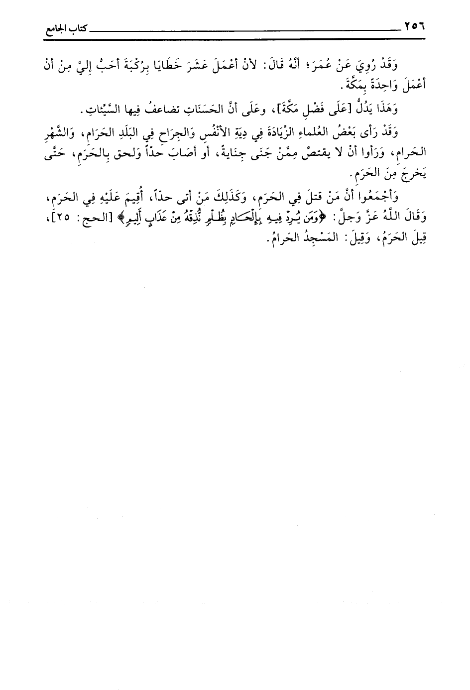 وَقَدْ رَأَى بَعْضُ الْعُلَمَاءِ الزِّيَادَةَ فِي دِيَةِ الْأَنْفُسِ وَالْجِرَاحِ فِي الْبَلَدِ الْحَرَامِ وَالشَّهْرِ الْحَرَامِ وَرَأَوْا أَنْ لَا يُقْتَصَّ مِمَّنْ جَنَى جِنَايَةً أَوْ أَصَابَ حَدًّا وَلَحِقَ بِالْحَرَمِ حَتَّى يَخْرُجَ من الحرام