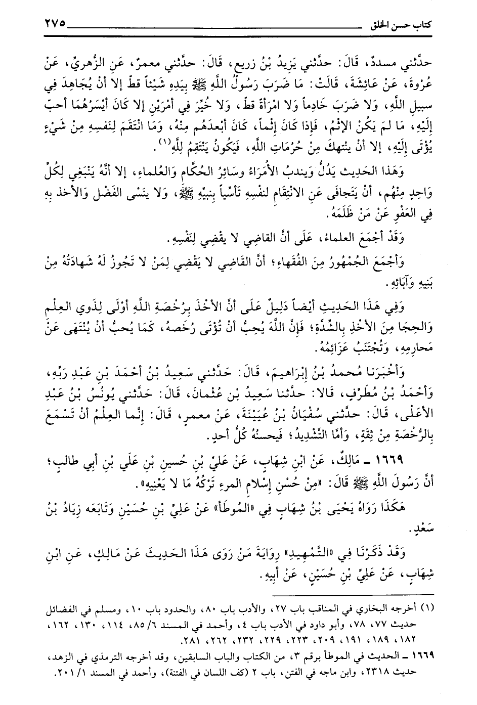 1669 - مَالِكٌ عَنِ بن شِهَابٍ عَنْ عَلِيِّ بْنِ حُسَيْنِ بْنِ عَلِيِّ بْنِ أَبِي طَالِبٍ أَنَّ رَسُولَ اللَّهِ صَلَّى اللَّهُ عَلَيْهِ وَسَلَّمَ قَالَ مِنْ حُسْنِ إِسْلَامِ الْمَرْءِ تَرْكُهُ مَا لَا يَعْنِيهِ