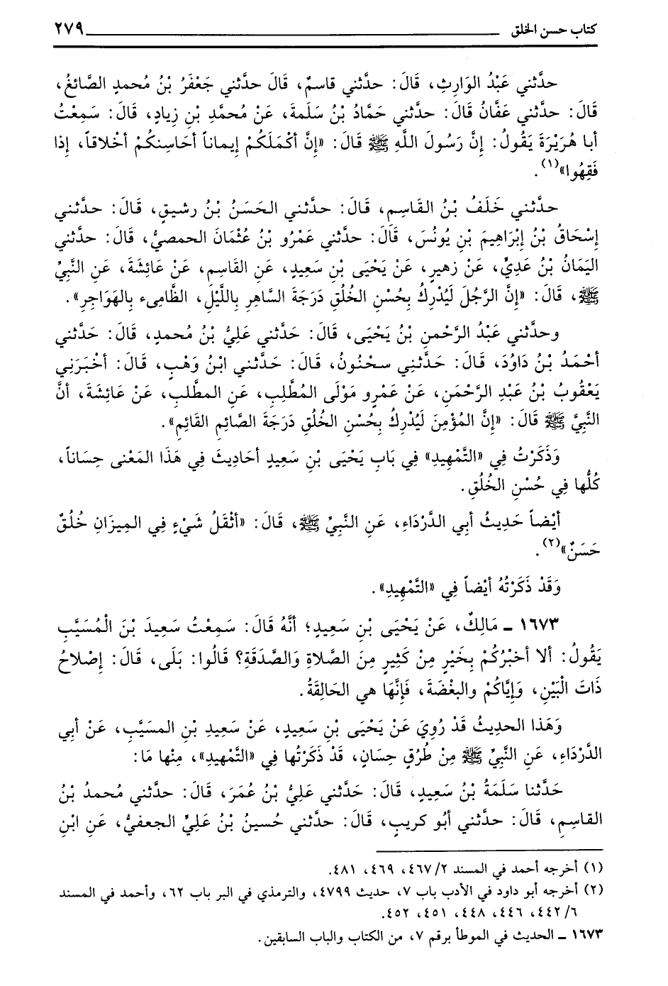 وَذَكَرْتُ فِي التَّمْهِيدِ فِي بَابِ يَحْيَى بْنِ سَعِيدٍ أَحَادِيثَ فِي هَذَا الْمَعْنَى حِسَانًا كُلُّهَا فِي حُسْنِ الْخُلُقِ