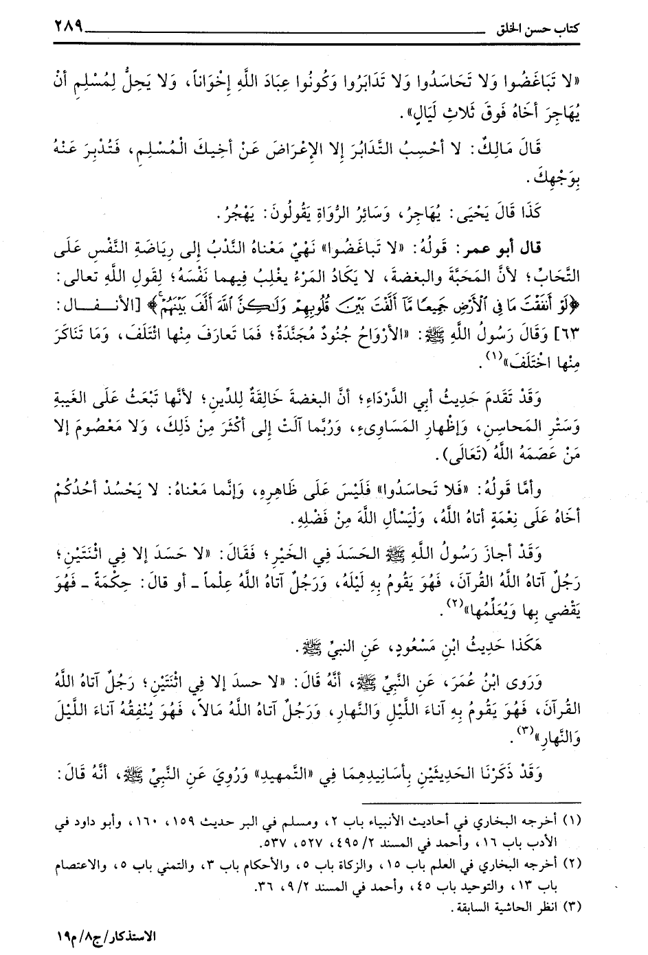 لَا تَبَاغَضُوا وَلَا تَحَاسَدُوا وَلَا تَدَابَرُوا وَكُونُوا عِبَادَ اللَّهِ إِخْوَانًا وَلَا يَحِلُّ لِمُسْلِمٍ أَنْ يُهَاجِرَ أَخَاهُ فَوْقَ ثَلَاثِ لَيَالٍ
