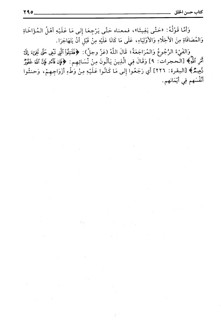 وَأَمَّا قَوْلُهُ حَتَّى يَفِيئَا فَمَعْنَاهُ حَتَّى يَرْجِعَا إِلَى مَا عَلَيْهِ أَهْلُ الْمُؤَاخَاةِ وَالْمُصَافَاةِ مِنَ الأخلاء والأولياء على ما كانا عَلَيْهِ مِنْ قَبْلِ أَنْ يَتَهَاجَرَا