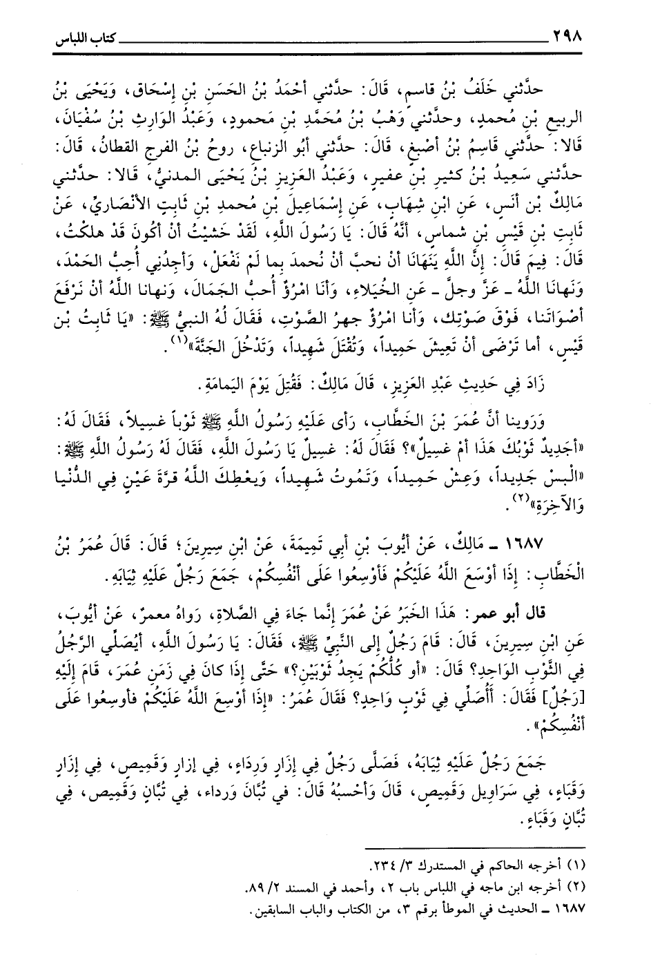 1687 - مَالِكٌ عن أيوب بن أبي تميمة عن بن سِيرِينَ قَالَ قَالَ عُمَرُ بْنُ الْخَطَّابِ إِذَا أَوْسَعَ اللَّهُ عَلَيْكُمْ فَأَوْسِعُوا عَلَى أَنْفُسِكُمْ جَمَعَ رَجُلٌ عَلَيْهِ ثِيَابَهُ