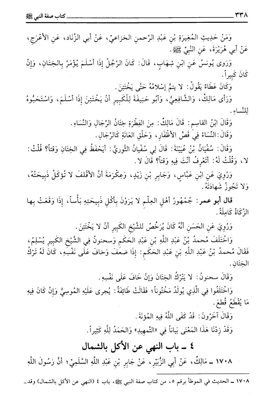 وروى يونس عن بن شِهَابٍ قَالَ كَانَ الرَّجُلُ إِذَا أَسْلَمَ يُؤْمَرُ بِالْخِتَانِ وَإِنْ كَانَ كَبِيرًا