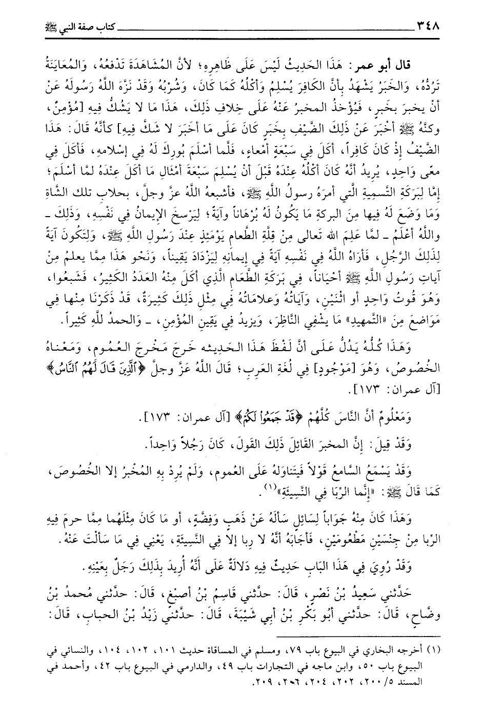 وَهَذَا كُلُّهُ يَدُلُّ عَلَى أَنَّ لَفْظَ هَذَا الْحَدِيثِ خَرَجَ مَخْرَجَ الْعُمُومِ وَمَعْنَاهُ الْخُصُوصُ وَهُوَ مَوْجُودٌ فِي لُغَةِ الْعَرَبِ قَالَ اللَّهُ عَزَّ وَجَلَّ (الَّذِينَ قَالَ لَهُمُ النَّاسُ) آلِ عِمْرَانَ 173