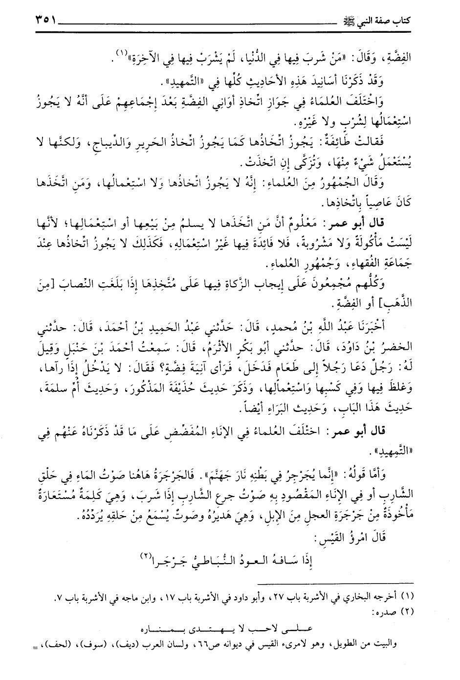 قَالَ أَبُو عُمَرَ اخْتَلَفَ الْعُلَمَاءُ فِي الْإِنَاءِ الْمُفَضَّضِ عَلَى مَا قَدْ ذَكَرْنَاهُ عَنْهُمْ فِي التَّمْهِيدِ