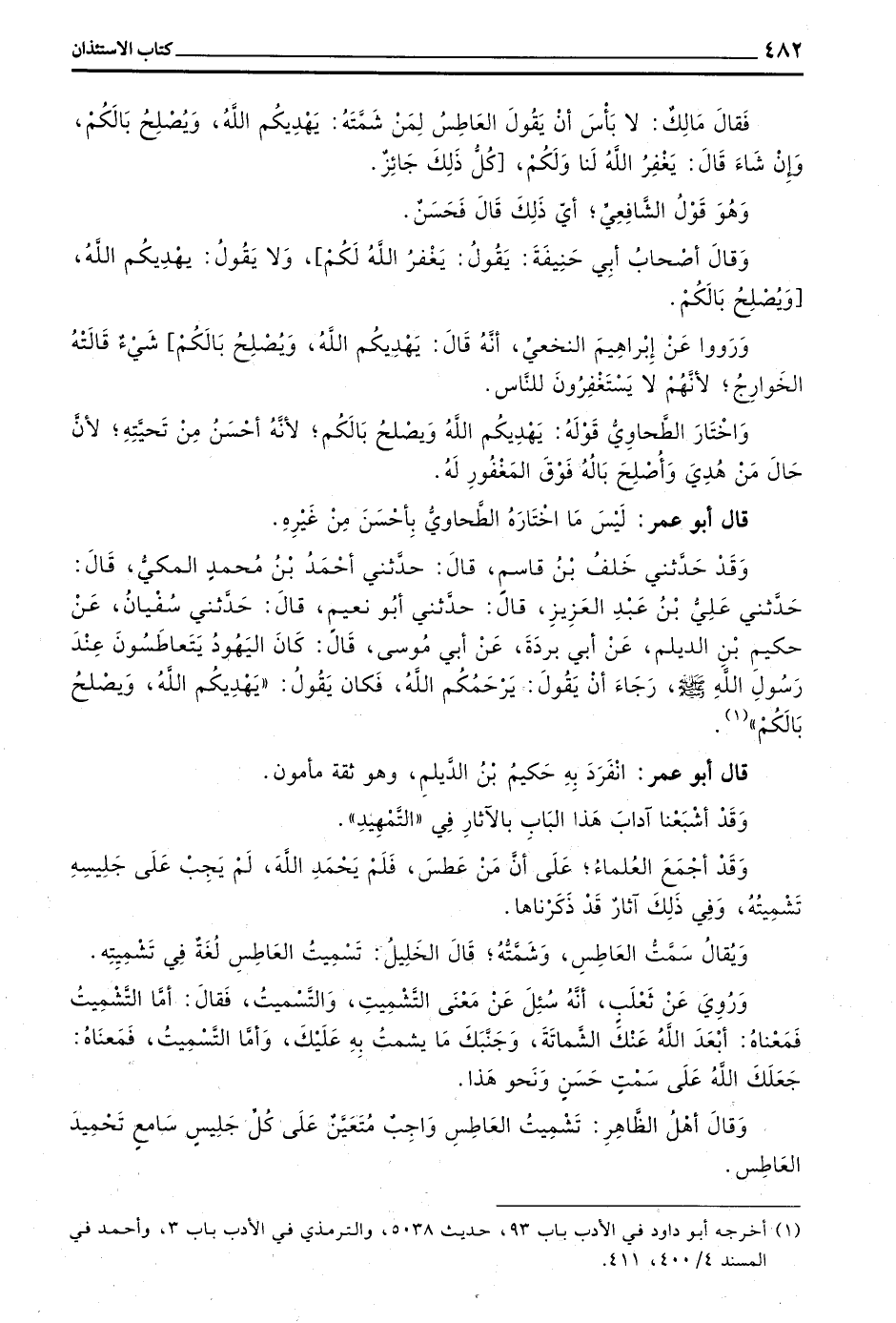 وَقَالَ أَصْحَابُ أَبِي حَنِيفَةَ يَقُولُ يَغْفِرُ اللَّهُ لَكُمْ وَلَا يَقُولُ يَهْدِيكُمُ اللَّهُ وَيُصْلِحُ بَالَكُمْ