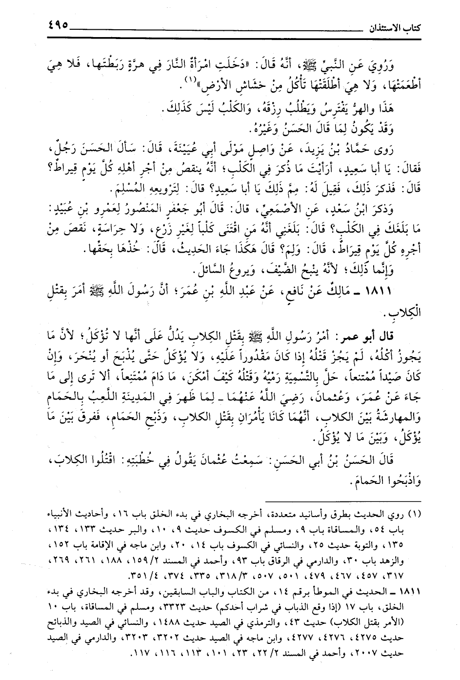 1811 - مَالِكٌ عَنْ نَافِعٍ عَنْ عَبْدِ اللَّهِ بْنِ عُمَرَ أَنَّ رَسُولَ اللَّهِ صَلَّى اللَّهُ عَلَيْهِ وَسَلَّمَ أَمَرَ بِقَتْلِ الْكِلَابِ