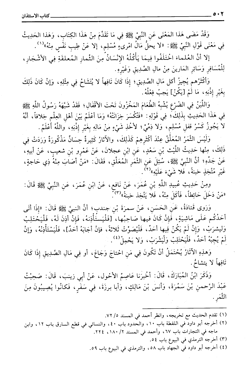 وَهَذِهِ الْآثَارُ يُحْتَمَلُ أَنْ تَكُونَ فِي مَنِ احْتَاجَ وَجَاعَ أَوْ فِي مَالِ الصَّدِيقِ إِذَا كَانَ تَافِهًا لَا يُتَشَاحُّ