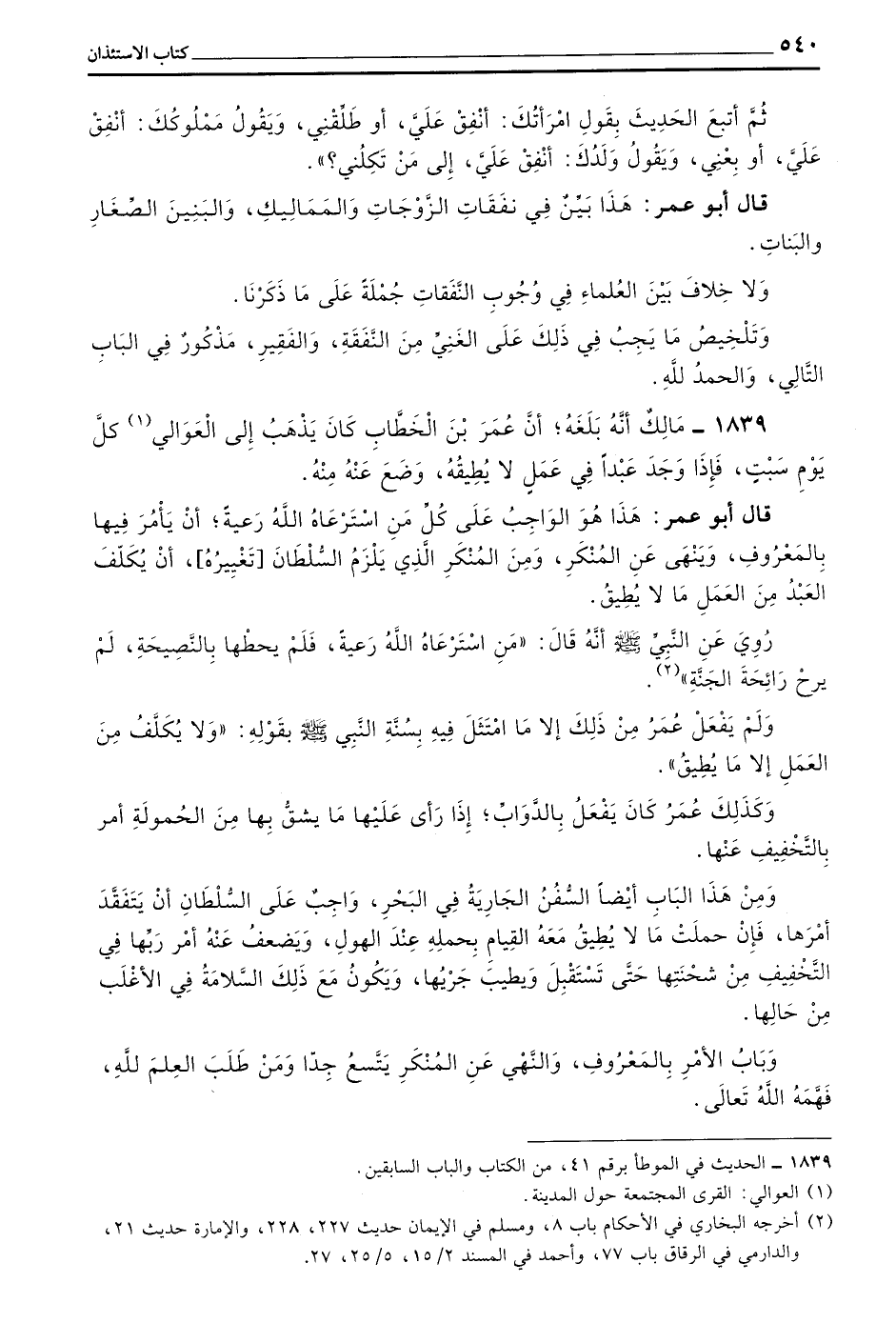 قَالَ أَبُو عُمَرَ هَذَا بَيِّنٌ فِي نَفَقَاتِ الزَّوْجَاتِ وَالْمَمَالِيكِ وَالْبَنِينَ الصِّغَارِ وَالْبَنَاتِ