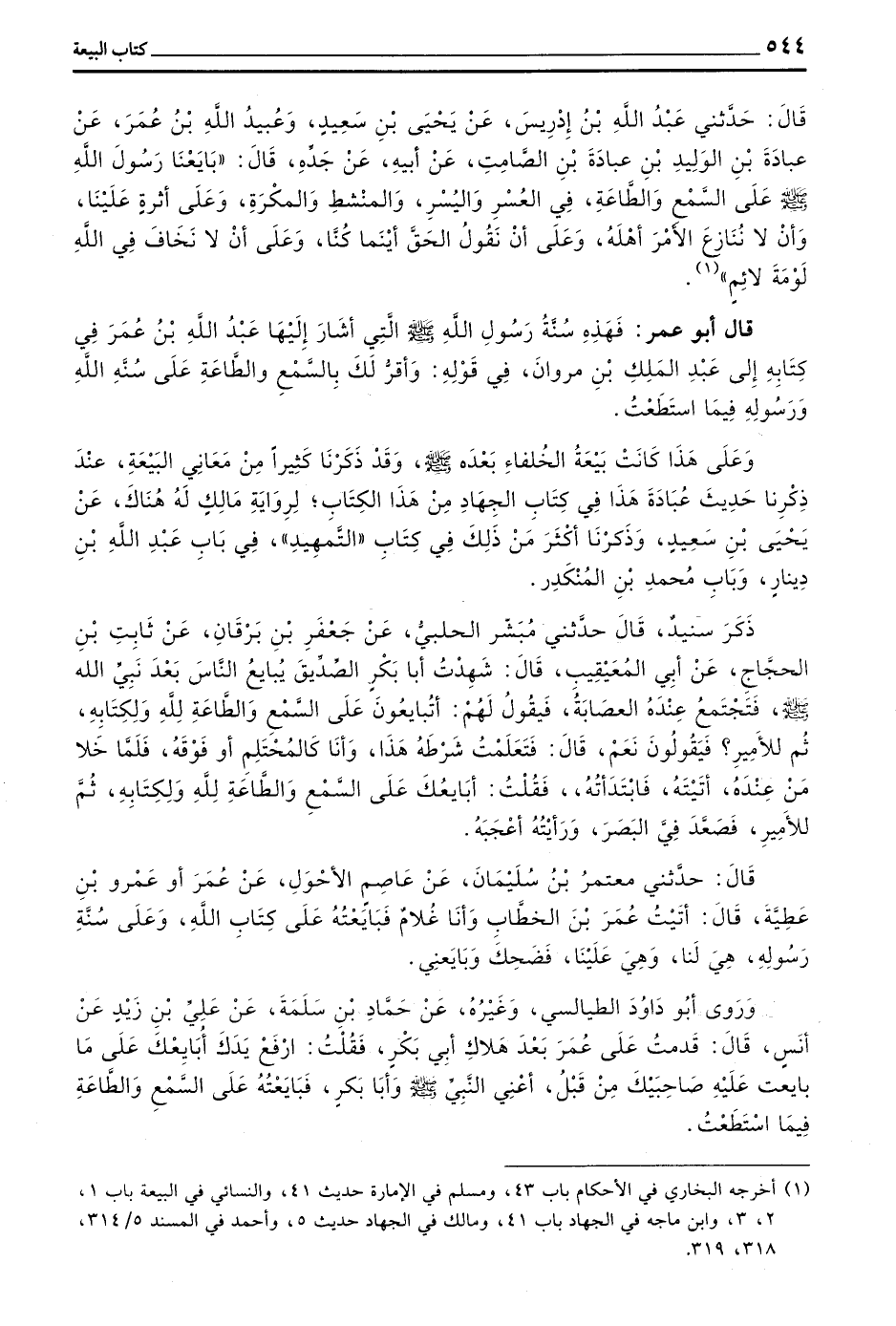 وَعَلَى هَذَا كَانَتْ بَيْعَةُ الْخُلَفَاءِ بَعْدَهُ صَلَّى اللَّهُ عَلَيْهِ وَسَلَّمَ وَقَدْ ذَكَرْنَا كَثِيرًا مِنْ مَعَانِي الْبَيْعَةِ عِنْدَ ذِكْرِنَا حَدِيثَ عُبَادَةَ هَذَا فِي كِتَابِ الْجِهَادِ مِنْ هَذَا الْكِتَابِ لِرِوَايَةِ مَالِكٍ لَهُ هُنَاكَ عَنْ يَحْيَى بْنِ سَعِيدٍ وَذَكَرْنَا أَكْثَرَ مِنْ ذَلِكَ فِي كِتَابِ التَّمْهِيدِ فِي بَابِ عَبْدِ اللَّهِ بْنِ دِينَارٍ وَبَابِ مُحَمَّدِ بْنِ الْمُنْكَدِرِ
