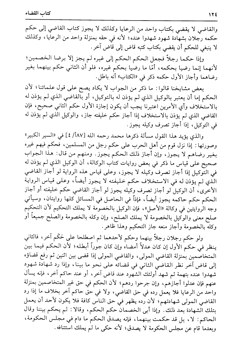 والقاضي لا يقضي بكتاب واحد من الرعايا وكذلك لا يجوز كتاب القاضي إلى حكم حكمه رجلان بشهادة شهود شهدوا عنده؛ لأنه في حقه بمنزلة واحد من الرعايا، وكذلك لا ينبغي للحكم أن يقضي بكتاب كتبه قاض إلى قاض آخر.
