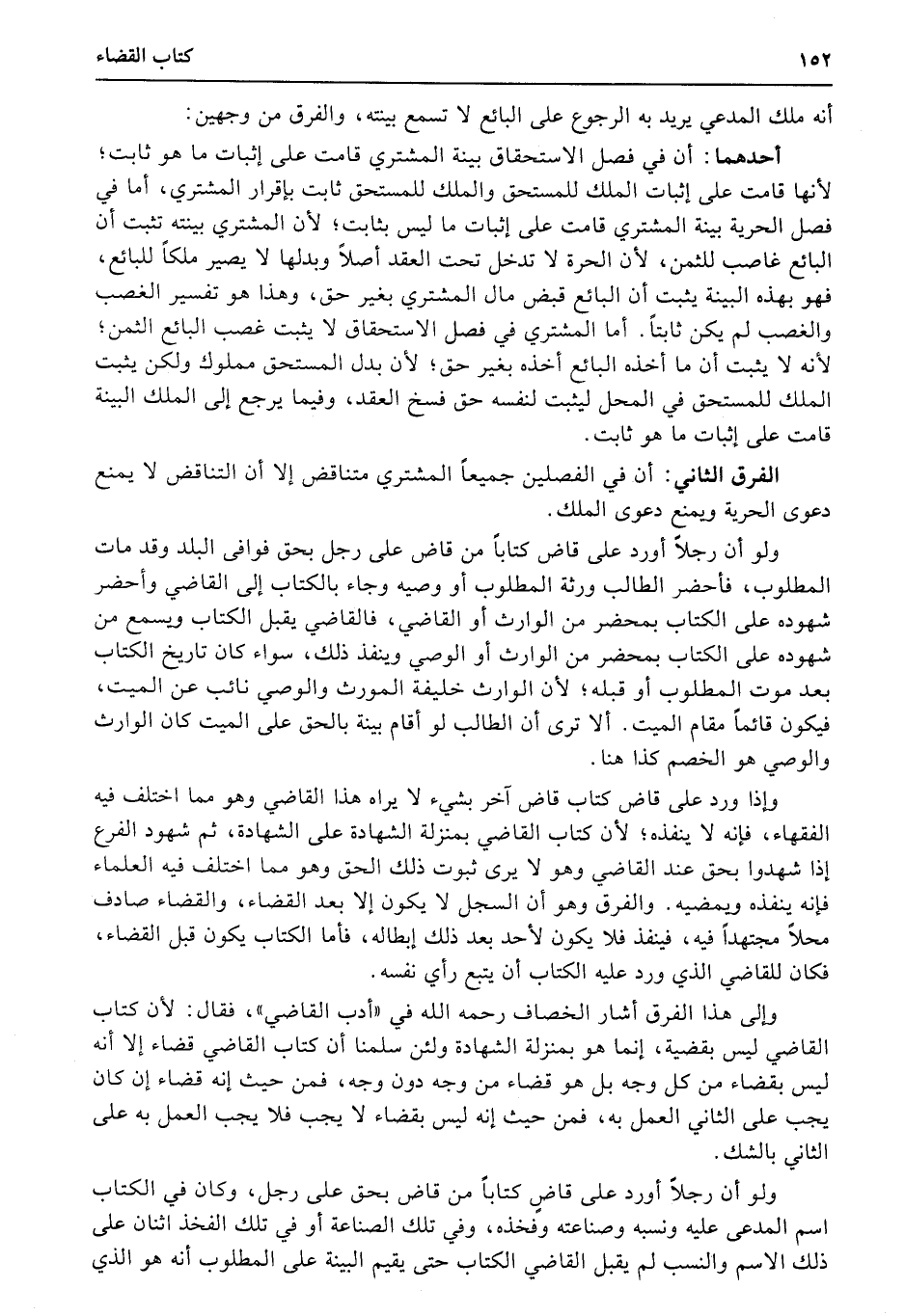وإذا ورد على قاض كتاب قاض آخر بشيء لا يراه هذا القاضي وهو مما اختلف فيه الفقهاء، فإنه لا ينفذه؛ لأن كتاب القاضي بمنزلة الشهادة على الشهادة، ثم شهود الفرع إذا شهدوا بحق عند القاضي وهو لا يرى ثبوت ذلك الحق وهو مما اختلف فيه العلماء فإنه ينفذه ويمضيه. والفرق وهو أن السجل لا يكون إلا بعد القضاء، والقضاء صادف محلاً مجتهداً فيه، فينفذ فلا يكون لأحد بعد ذلك إبطاله، فأما الكتاب يكون قبل القضاء، فكان للقاضي الذي ورد عليه الكتاب أن يتبع رأي نفسه.