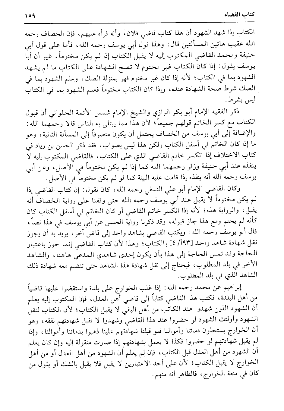الكتاب إذا شهد الشهود أن هذا كتاب قاضي فلان، وأنه قرأه عليهم، فإن الخصاف رحمه الله عقيب هاتين المسألتين (قال:) وهذا قول أبي يوسف رحمه الله، فأما على قول أبي حنيفة ومحمد القاضي المكتوب إليه لا يقبل الكتاب إذا لم يكن مختوماً، غير أن أبا يوسف يقول: إذا كان الكتاب غير مختوم لا تصح الشهادة على الكتاب ما لم يشهد الشهود بما في الكتاب؛ لأنه إذا كان غير مختوم فهو بمنزلة الصك، وعلم الشهود بما في الصك شرط صحة الشهادة عنده، وإذا كان الكتاب مختوماً فعلم الشهود بما في الكتاب ليس بشرط.