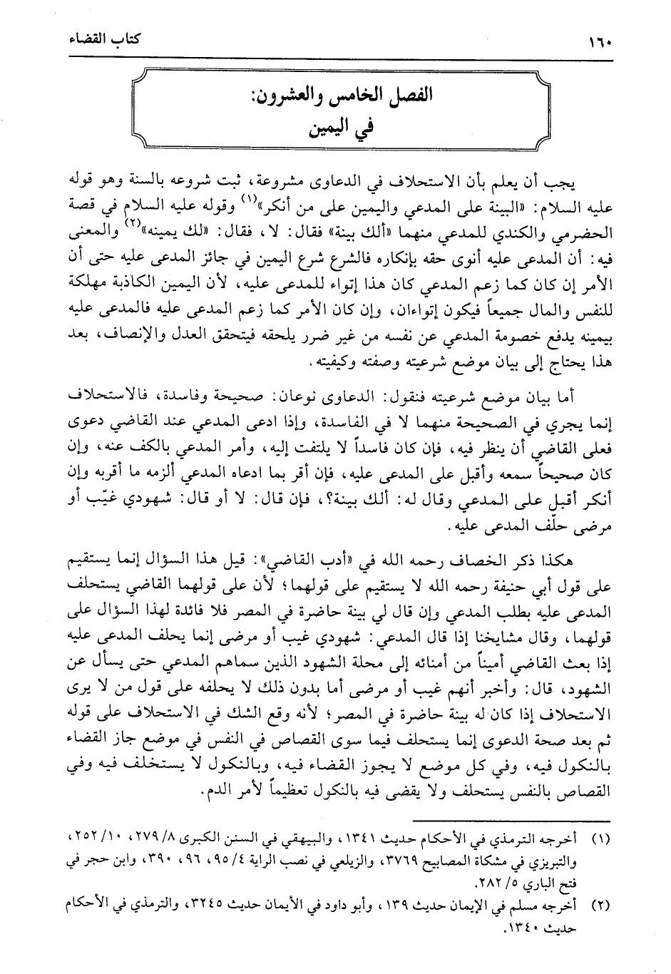 يجب أن يعلم بأن الاستحلاف في الدعاوي مشروعة، ثبت شروعه بالسنة وهو قوله عليه السلام: «البينة على المدعي واليمين على من أنكر» وقوله عليه السلام في قصة الحضرمي والكندي للمدعي منهما «ألك بينة» فقال: لا، فقال: «لك يمينه» والمعنى فيه: أن المدعى عليه أنوى حقه بإنكاره فالشرع شرع اليمين في جائز المدعى عليه حتى أن الأمر إن كان كما زعم المدعي كان هذا إتواء للمدعى عليه، لأن اليمين الكاذبة مهلكة للنفس والمال جميعاً فيكون إتواءان، وإن كان الأمر كما زعم المدعى عليه فالمدعى عليه بيمينه يدفع خصومة المدعي عن نفسه من غير ضرر يلحقه فيتحقق العدل والإنصاف، بعد هذا يحتاج إلى بيان موضع شرعيته وصفته وكيفيته.