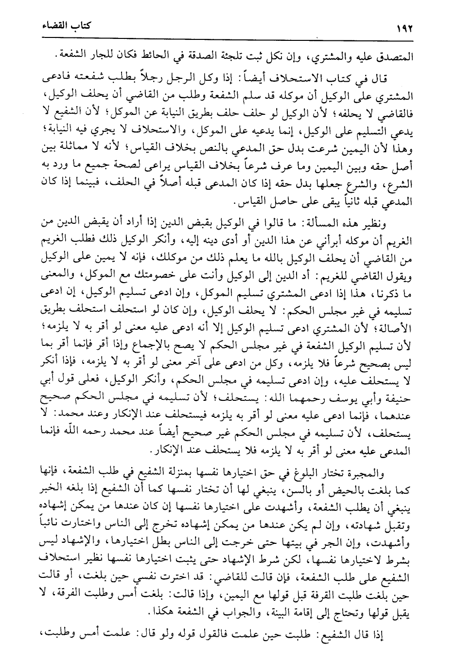 قال في كتاب الاستحلاف أيضاً: إذا وكل الرجل رجلاً بطلب شفعته فادعى المشتري على الوكيل أن موكله قد سلم الشفعة وطلب من القاضي أن يحلف الوكيل، فالقاضي لا يحلفه؛ لأن الوكيل لو حلف حلف بطريق النيابة عن الموكل؛ لأن الشفيع لا يدعي التسليم على الوكيل، إنما يدعيه على الموكل، والاستحلاف لا يجري فيه النيابة؛ وهذا لأن اليمين شرعت بدل حق المدعي بالنص بخلاف القياس؛ لأنه لا مماثلة بين أصل حقه وبين اليمين وما عرف شرعاً بخلاف القياس يراعى لصحة جميع ما ورد به الشرع، والشرع جعلها بدل حقه إذا كان المدعى قبله أصلاً في الحلف، فبينما إذا كان المدعي قبله ثانياً يبقى على حاصل القياس.