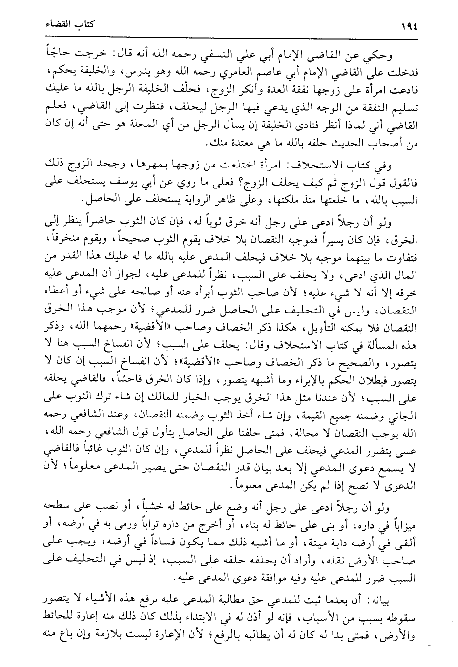 وحكي عن القاضي الإمام أبي علي النسفي رحمه الله أنه قال: خرجت حاجّاً فدخلت على القاضي الإمام أبي عاصم العامري رحمه الله وهو يدرس، والخليفة يحكم، فادعت امرأة على زوجها نفقة العدة وأنكر الزوج، فحلّف الخليفة الرجل بالله ما عليك تسليم النفقة من الوجه الذي يدعي فيها الرجل ليحلف، فنظرت إلى القاضي، فعلم القاضي أني لماذا أنظر فنادى الخليفة إن يسأل الرجل من أي المحلة هو حتى إنه إن كان من أصحاب الحديث حلفه بالله ما هي معتدة منك.