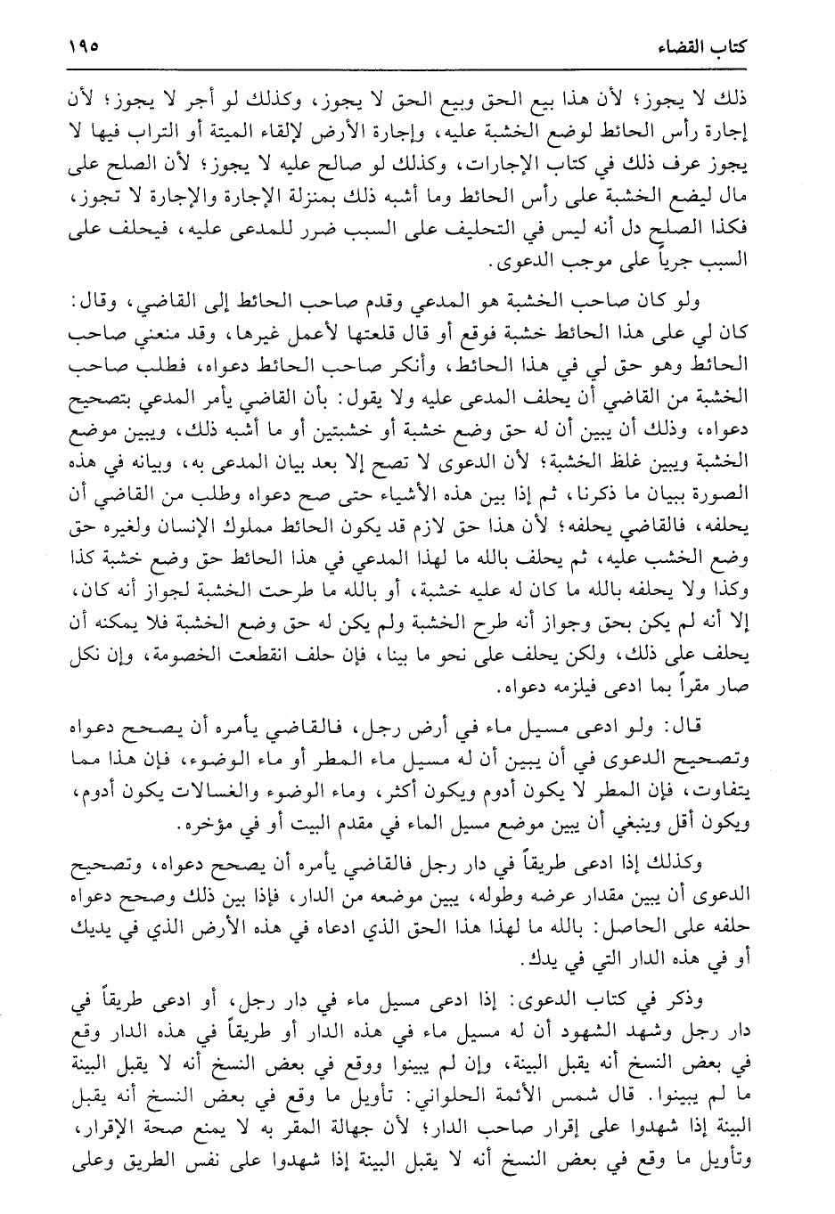وذكر في كتاب الدعوى: إذا ادعى مسيل ماء في دار رجل، أو ادعى طريقاً في دار رجل وشهد الشهود أن له مسيل ماء في هذه الدار أو طريقاً في هذه الدار وقع في بعض النسخ أنه يقبل البينة، وإن لم يبينوا ووقع في بعض النسخ أنه لا يقبل البينة ما لم يبينوا. قال شمس الأئمة الحلواني: تأويل ما وقع في بعض النسخ أنه يقبل البينة إذا شهدوا على إقرار صاحب الدار؛ لأن جهالة المقر به لا يمنع صحة الإقرار، وتأويل ما وقع في بعض النسخ أنه لا يقبل البينة إذا شهدوا على نفس الطريق وعلى