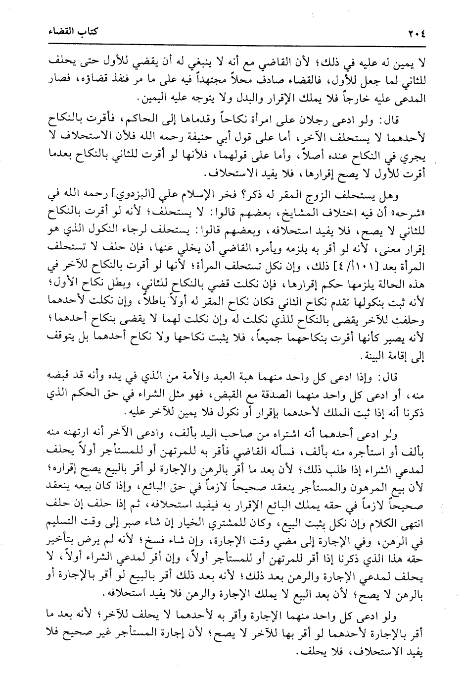وهل يستحلف الزوج المقر له ذكر؟ فخر الإسلام علي رحمه الله في «شرحه» أن فيه اختلاف المشايخ، بعضهم قالوا: لا يستحلف؛ لأنه لو أقرت بالنكاح للثاني لا يصح، فلا يفيد استحلافه، وبعضهم قالوا: يستحلف لرجاء النكول الذي هو إقرار معنى، لأنه لو أقر به يلزمه ويأمره القاضي أن يخلي عنها، فإن حلف لا تستحلف المرأة بعد (101أ4) ذلك، وإن نكل تستحلف المرأة؛ لأنها لو أقرت بالنكاح للآخر في هذه الحالة يلزمها حكم إقرارها، فإن نكلت قضي بالنكاح للثاني، وبطل نكاح الأول؛ لأنه ثبت بنكولها تقدم نكاح الثاني فكان نكاح المقر له أولاً باطلاً، وإن نكلت لأحدهما وحلفت (للآخر) يقضى بالنكاح للذي نكلت له وإن نكلت لهما لا يقضى بنكاح أحدهما؛ لأنه يصير كأنها أقرت بنكاحهما جميعاً، فلا يثبت نكاحها ولا نكاح أحدهما بل يتوقف إلى إقامة البينة.