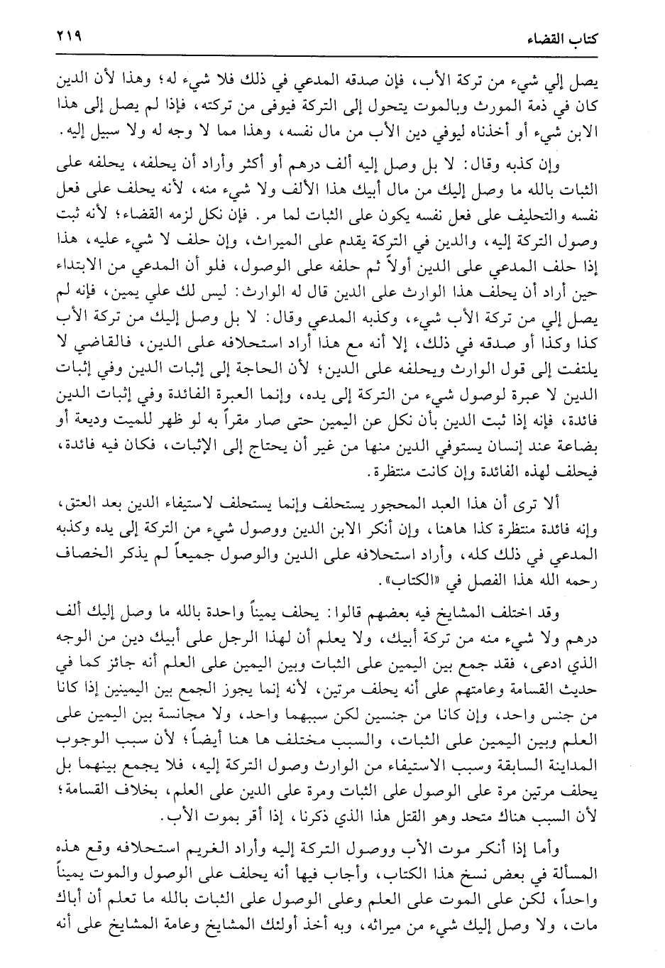 يصل إلي شيء من تركة الأب، فإن صدقه المدعي في ذلك فلا شيء له؛ وهذا لأن الدين كان في ذمة المورث وبالموت يتحول إلى التركة فيوفى من تركته، فإذا لم يصل إلى هذا الابن شيء أو أخذناه ليوفي دين الأب من مال نفسه، وهذا مما لا وجه له ولا سبيل إليه.
