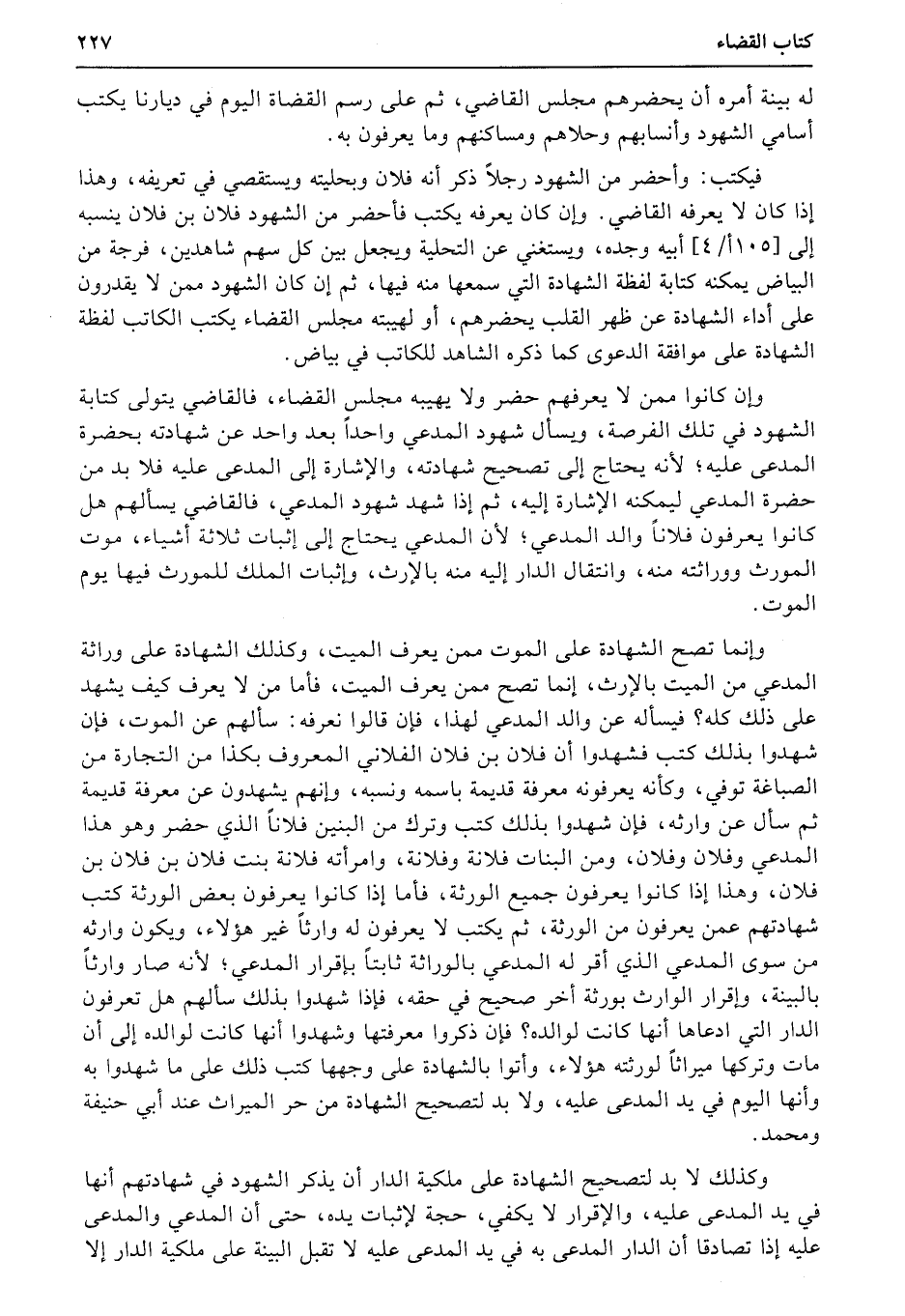 فيكتب: وأحضر من الشهود رجلاً ذكر أنه فلان وبحليته ويستقصي في تعريفه، وهذا إذا كان لا يعرفه القاضي. وإن كان يعرفه يكتب فأحضر من الشهود فلان بن فلان ينسبه إلى (105أ4) أبيه وجده، ويستغني عن التحلية ويجعل بين كل سهم شاهدين، فرجة من البياض يمكنه كتابة لفظة الشهادة التي سمعها منه فيها، ثم إن كان الشهود ممن لا يقدرون على أداء الشهادة عن ظهر القلب يحضرهم، أو لهيبته مجلس القضاء يكتب الكاتب لفظة الشهادة على موافقة الدعوى كما ذكره الشاهد للكاتب في بياض.