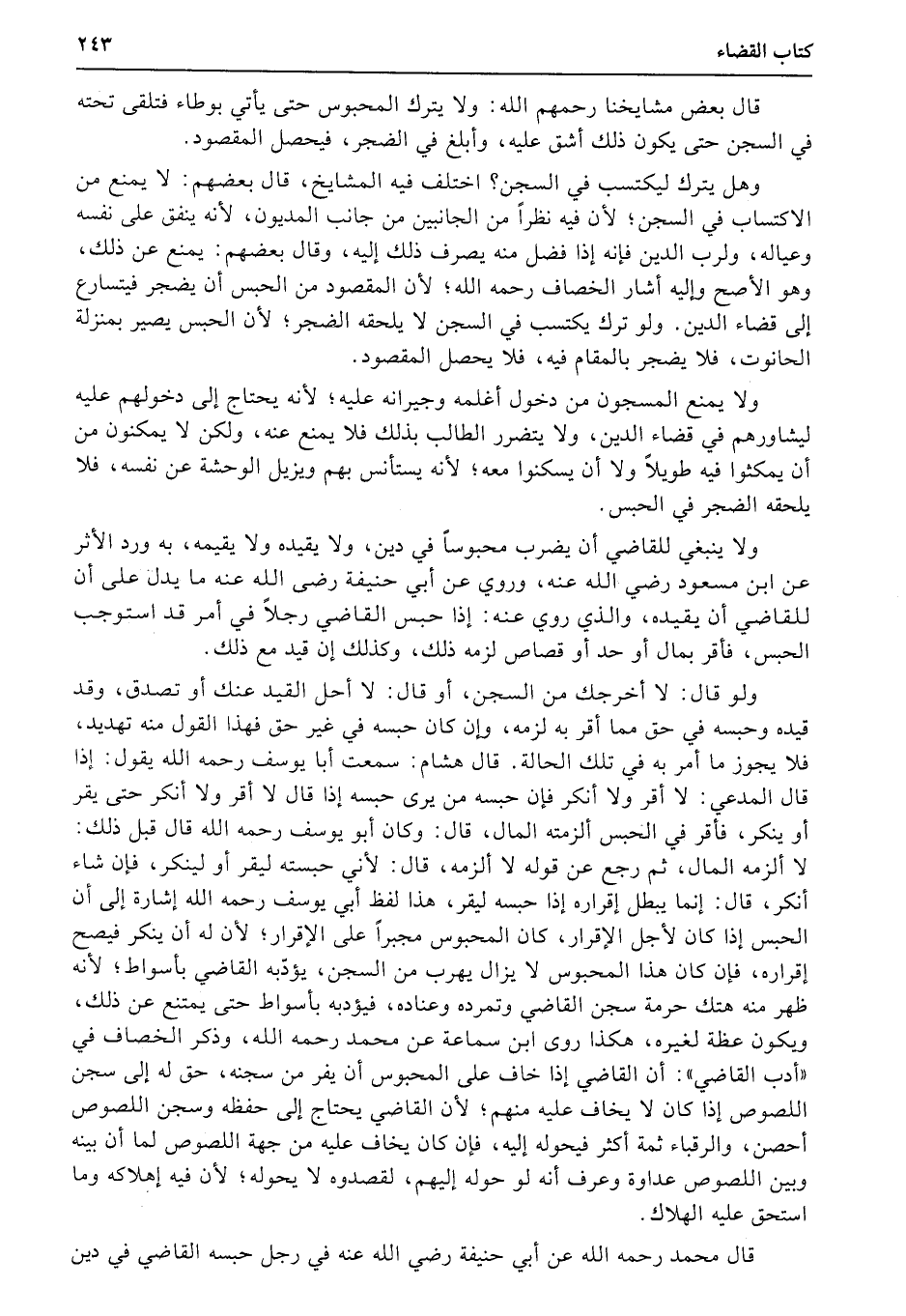 قال محمد رحمه الله عن أبي حنيفة رضي الله عنه في رجل حبسه القاضي في دين