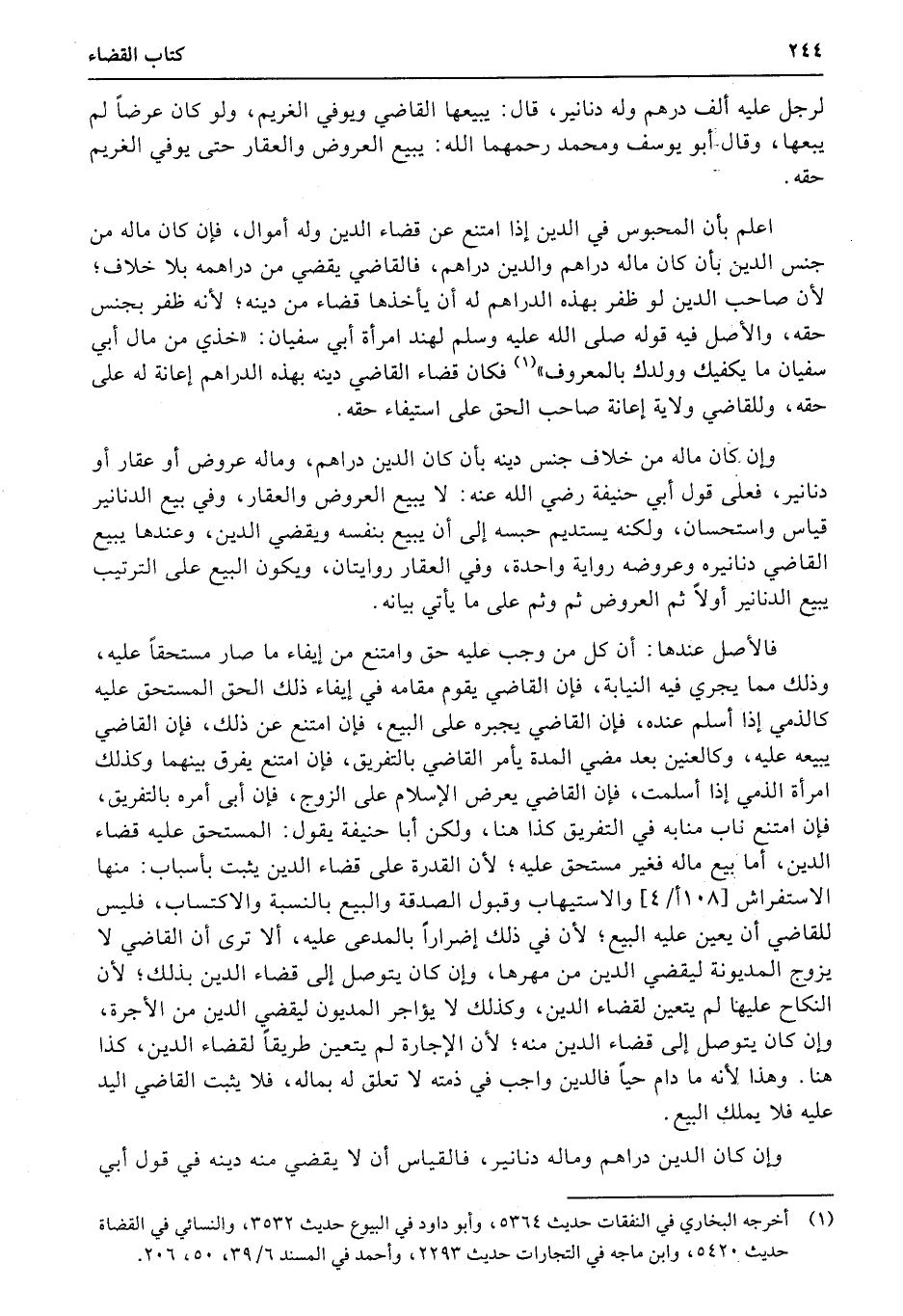 اعلم بأن المحبوس في الدين إذا امتنع عن قضاء الدين وله أموال، فإن كان ماله من جنس الدين بأن كان ماله دراهم والدين دراهم، فالقاضي يقضي من دراهمه بلا خلاف؛ لأن صاحب الدين لو ظفر بهذه الدراهم له أن يأخذها قضاء من دينه؛ لأنه ظفر بجنس حقه، والأصل فيه قوله صلى الله عليه وسلم لهند امرأة أبي سفيان: «خذي من مال أبي سفيان ما يكفيك وولدك بالمعروف» فكان قضاء القاضي دينه بهذه الدراهم إعانة له على حقه، وللقاضي ولاية إعانة صاحب الحق على استيفاء حقه.