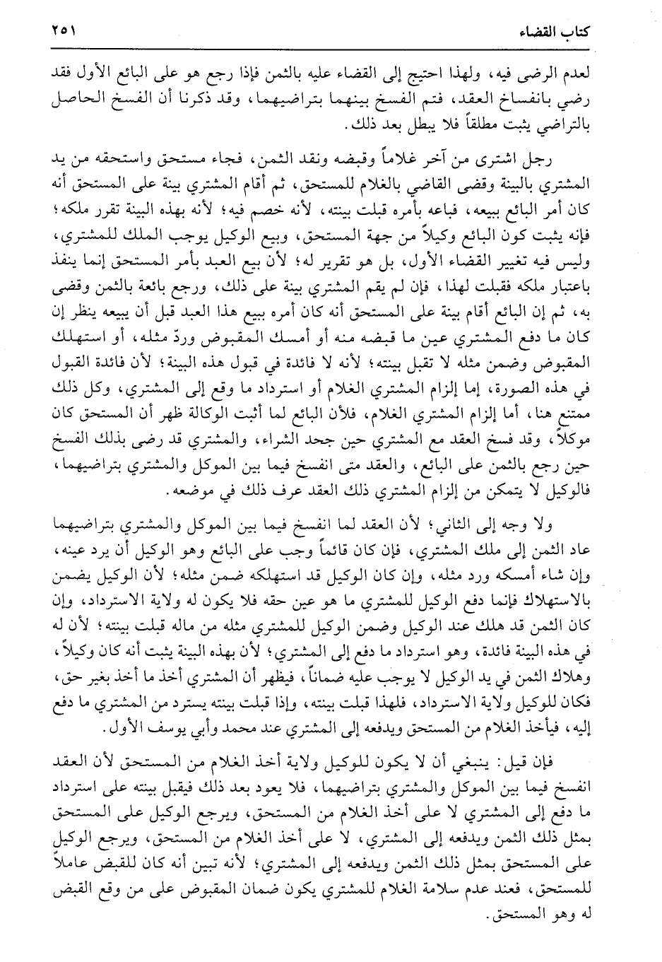 فإن قيل: ينبغي أن لا يكون للوكيل ولاية أخذ الغلام من المستحق لأن العقد انفسخ فيما بين الموكل والمشتري بتراضيهما، فلا يعود بعد ذلك فيقبل بينته على استرداد ما دفع إلى المشتري لا على أخذ الغلام من المستحق، ويرجع الوكيل على المستحق بمثل ذلك الثمن ويدفعه إلى المشتري، لا على أخذ الغلام من المستحق، ويرجع الوكيل على المستحق بمثل ذلك الثمن ويدفعه إلى المشتري؛ لأنه تبين أنه كان للقبض عاملاً للمستحق، فعند عدم سلامة الغلام للمشتري يكون ضمان المقبوض على من وقع القبض له وهو المستحق.