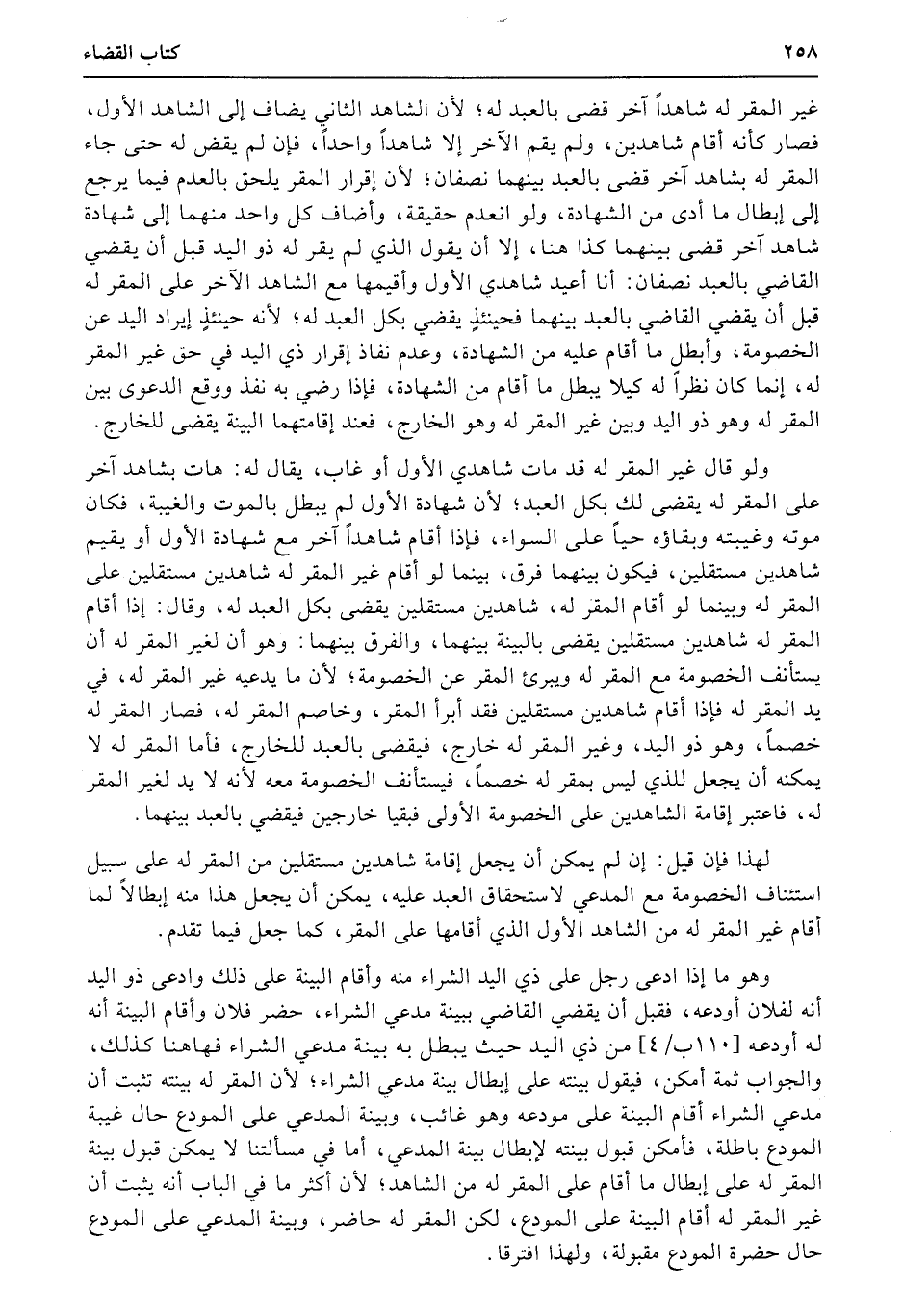 لهذا فإن قيل: إن لم يمكن أن يجعل إقامة شاهدين مستقلين من المقر له على سبيل استئناف الخصومة مع المدعي لاستحقاق العبد عليه، يمكن أن يجعل هذا منه إبطالاً لما أقام غير المقر له من الشاهد الأول الذي أقامها على المقر، كما جعل فيما تقدم.