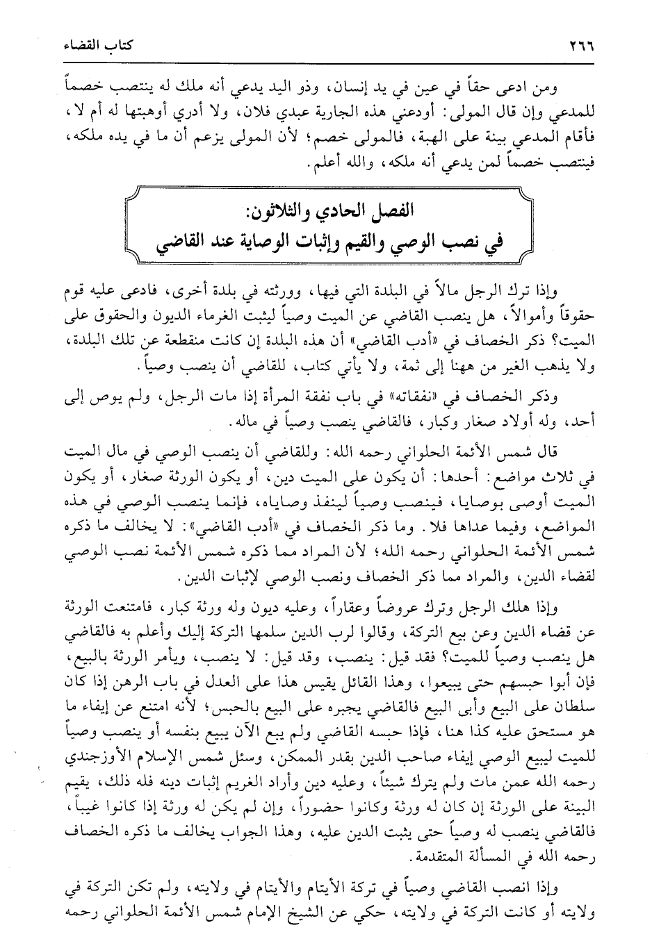 الفصل الحادي والثلاثون: في نصب الوصي والقيم وإثبات الوصاية عند القاضي