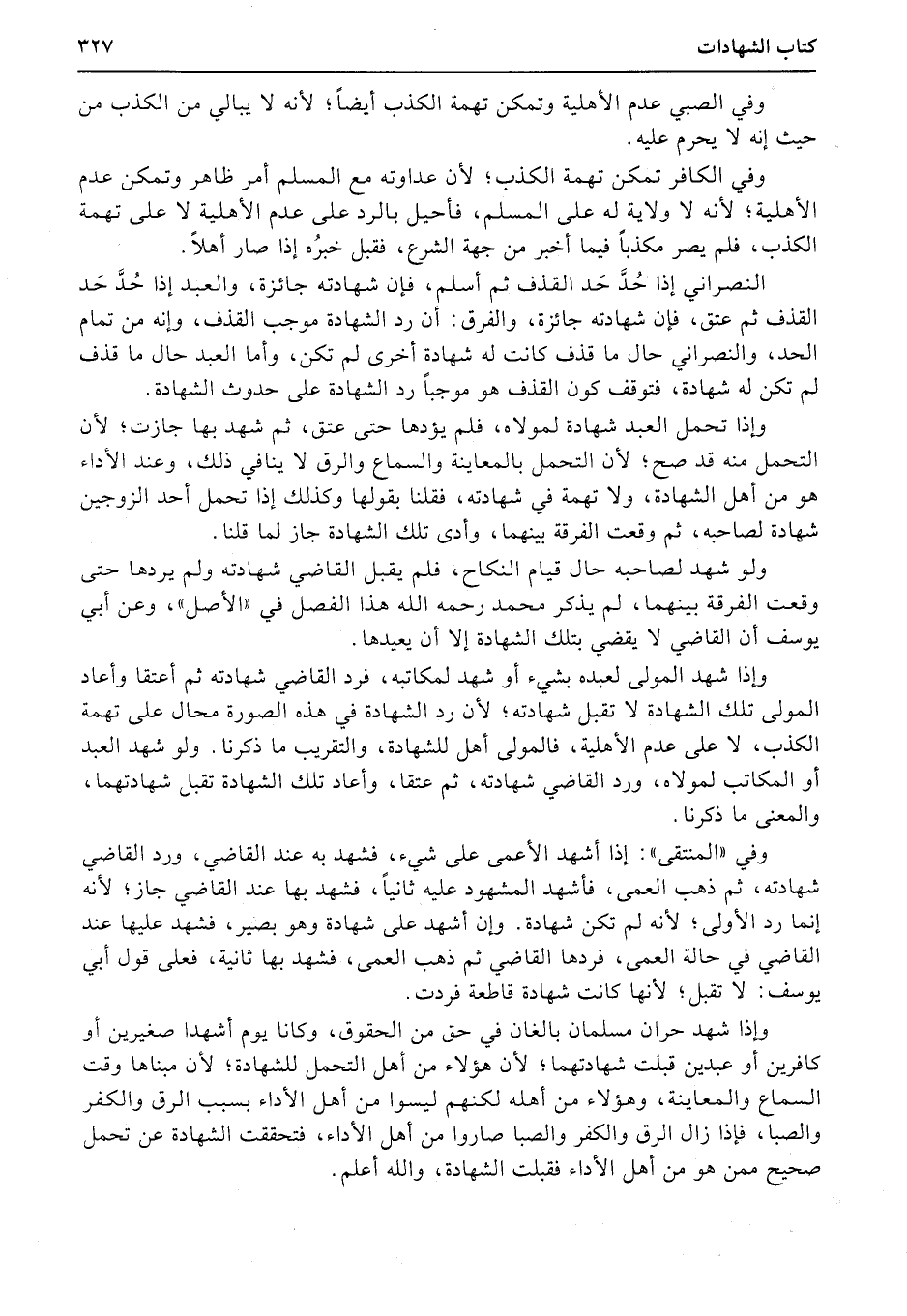وإذا شهد حران مسلمان بالغان في حق من الحقوق، وكانا يوم أشهدا صغيرين أو كافرين أو عبدين قبلت شهادتهما؛ لأن هؤلاء من أهل التحمل للشهادة؛ لأن مبناها وقت السماع والمعاينة، وهؤلاء من أهله لكنهم ليسوا من أهل الأداء بسبب الرق والكفر والصبا، فإذا زال الرق والكفر والصبا صاروا من أهل الأداء، فتحققت الشهادة عن تحمل صحيح ممن هو من أهل الأداء فقبلت الشهادة، والله أعلم.