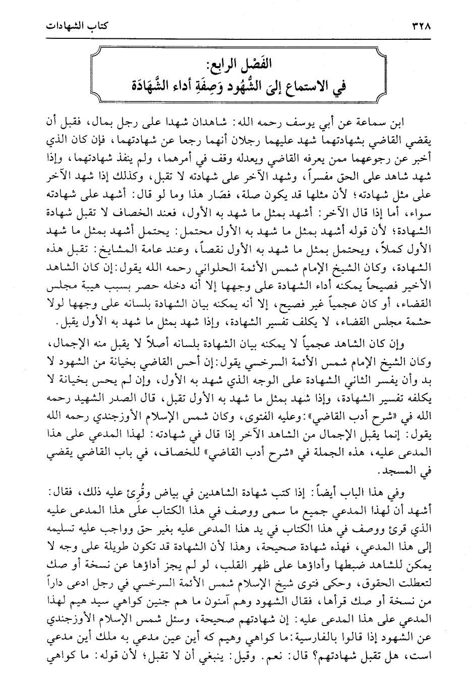 الفَصْل الرابِع: في الاستماع إلىَ الشُهُود وَصِفَةِ أداء الشَّهَادَة