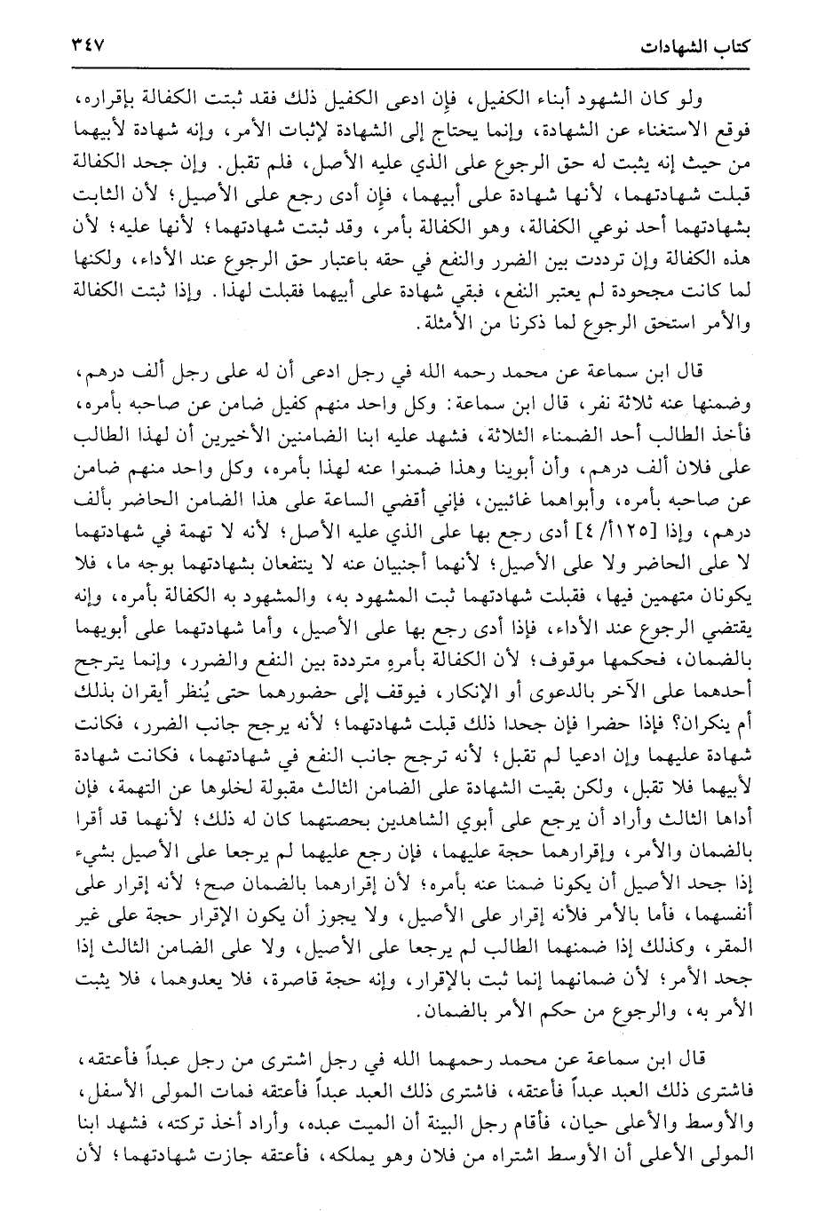 ولو كان الشهود أبناء الكفيل، فإِن ادعى الكفيل ذلك فقد ثبتت الكفالة بإقراره، فوقع الاستغناء عن الشهادة، وإنما يحتاج إلى الشهادة لإثبات الأمر، وإنه شهادة لأبيهما من حيث إنه يثبت له حق الرجوع على الذي عليه الأصل، فلم تقبل. وإن جحد الكفالة قبلت شهادتهما، لأنها شهادة على أبيهما، فإِن أدى رجع على الأصيل؛ لأن الثابت بشهادتهما أحد نوعي الكفالة، وهو الكفالة بأمر، وقد ثبتت شهادتهما؛ لأنها عليه؛ لأن هذه الكفالة وإن ترددت بين الضرر والنفع في حقه باعتبار حق الرجوع عند الأداء، ولكنها لما كانت مجحودة لم يعتبر النفع، فبقي شهادة على أبيهما فقبلت لهذا. وإذا ثبتت الكفالة والأمر استحق الرجوع لما ذكرنا من الأمثلة.