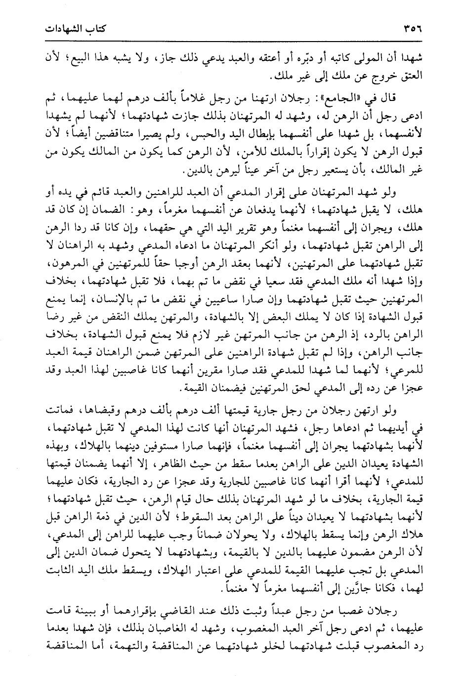 ولو ارتهن رجلان من رجل جارية قيمتها ألف درهم بألف درهم وقبضاها، فماتت في أيديهما ثم ادعاها رجل، فشهد المرتهنان أنها كانت لهذا المدعي لا تقبل شهادتهما، لأنهما بشهادتهما يجران إلى أنفسهما مغنماً، فإنهما صارا مستوفين دينهما بالهلاك، وبهذه الشهادة يعيدان الدين على الراهن بعدما سقط من حيث الظاهر، إلا أنهما يضمنان قيمتها للمدعي؛ لأنهما أقرا أنهما كانا غاصبين للجارية وقد عجزا عن رد الجارية، فكان عليهما قيمة الجارية، بخلاف ما لو شهد المرتهنان بذلك حال قيام الرهن، حيث تقبل شهادتهما؛ لأنهما بشهادتهما لا يعيدان ديناً على الراهن بعد السقوط؛ لأن الدين في ذمة الراهن قبل هلاك الرهن وإنما يسقط بالهلاك، ولا يحولان ضماناً وجب عليهما للراهن إلى المدعي، لأن الرهن مضمون عليهما بالدين لا بالقيمة، وبشهادتهما لا يتحول ضمان الدين إلى المدعي بل تجب عليهما القيمة للمدعي على اعتبار الهلاك، ويسقط ملك اليد الثابت لهما، فكانا جارَّين إلى أنفسهما مغرماً لا مغنماً.