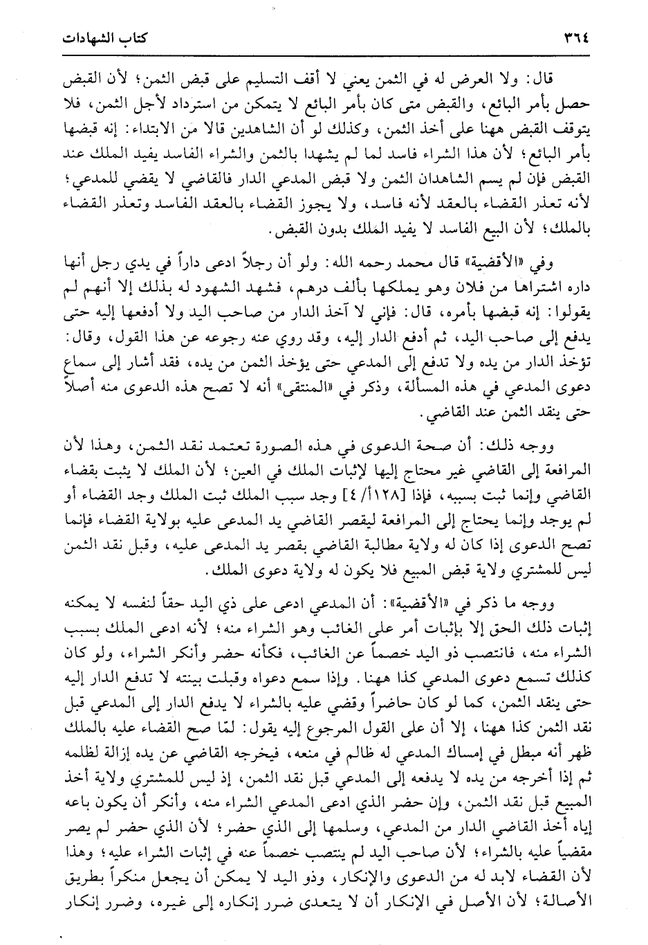 وفي «الأقضية» قال محمد رحمه الله: ولو أن رجلاً ادعى داراً في يدي رجل أنها داره اشتراها من فلان وهو يملكها بألف درهم، فشهد الشهود له بذلك إلا أنهم لم يقولوا: إنه قبضها بأمره، قال: فإني لا آخذ الدار من صاحب اليد ولا أدفعها إليه حتى يدفع إلى صاحب اليد، ثم أدفع الدار إليه، وقد روي عنه رجوعه عن هذا القول، وقال: تؤخذ الدار من يده ولا تدفع إلى المدعي حتى يؤخذ الثمن من يده، فقد أشار إلى سماع دعوى المدعي في هذه المسألة، وذكر في «المنتقى» أنه لا تصح هذه الدعوى منه أصلاً حتى ينقد الثمن عند القاضي.