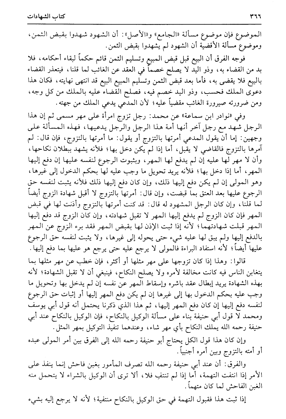 الموضوع فإن موضوع مسألة «الجامع» و «الأصل» : أن الشهود شهدوا بقبض الثمن، وموضوع مسألة الأقضية أن الشهود لم يشهدوا بقبض الثمن.
