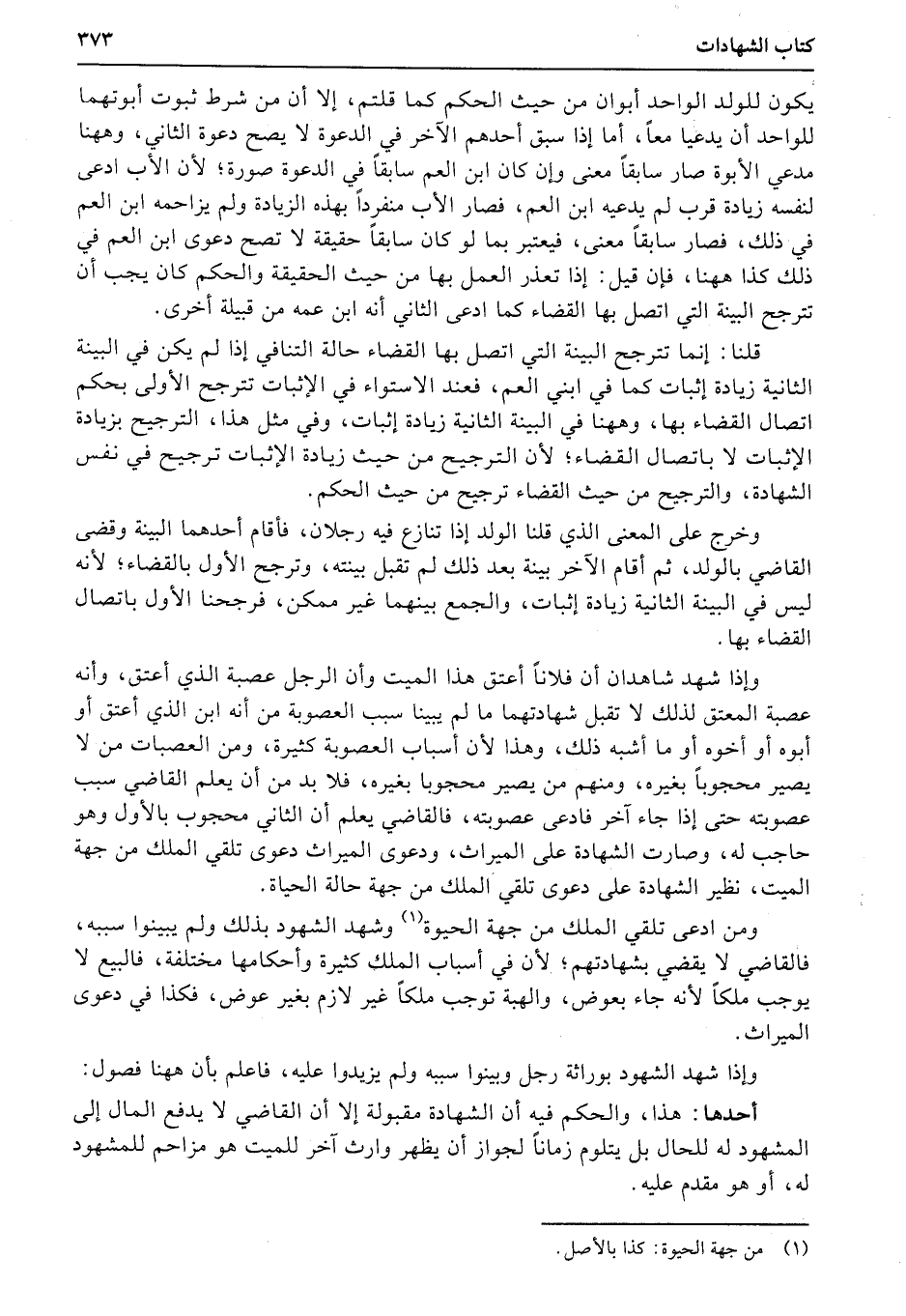 وإذا شهد الشهود بوراثة رجل وبينوا سببه ولم يزيدوا عليه، فاعلم بأن ههنا فصول: