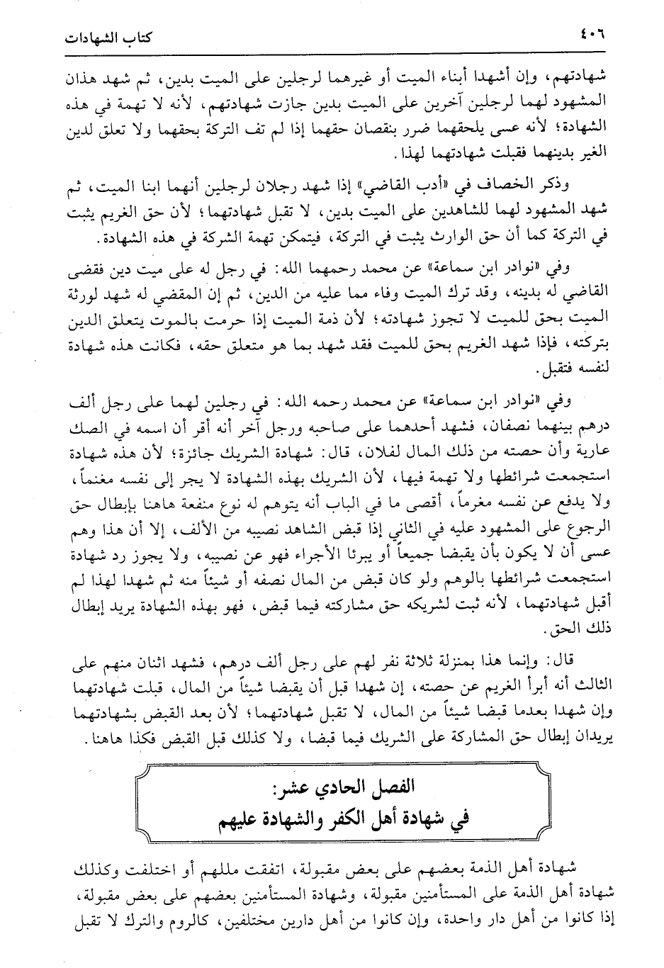 الفصل الحادي عشر: في شهادة أهل الكفر والشهادة عليهم