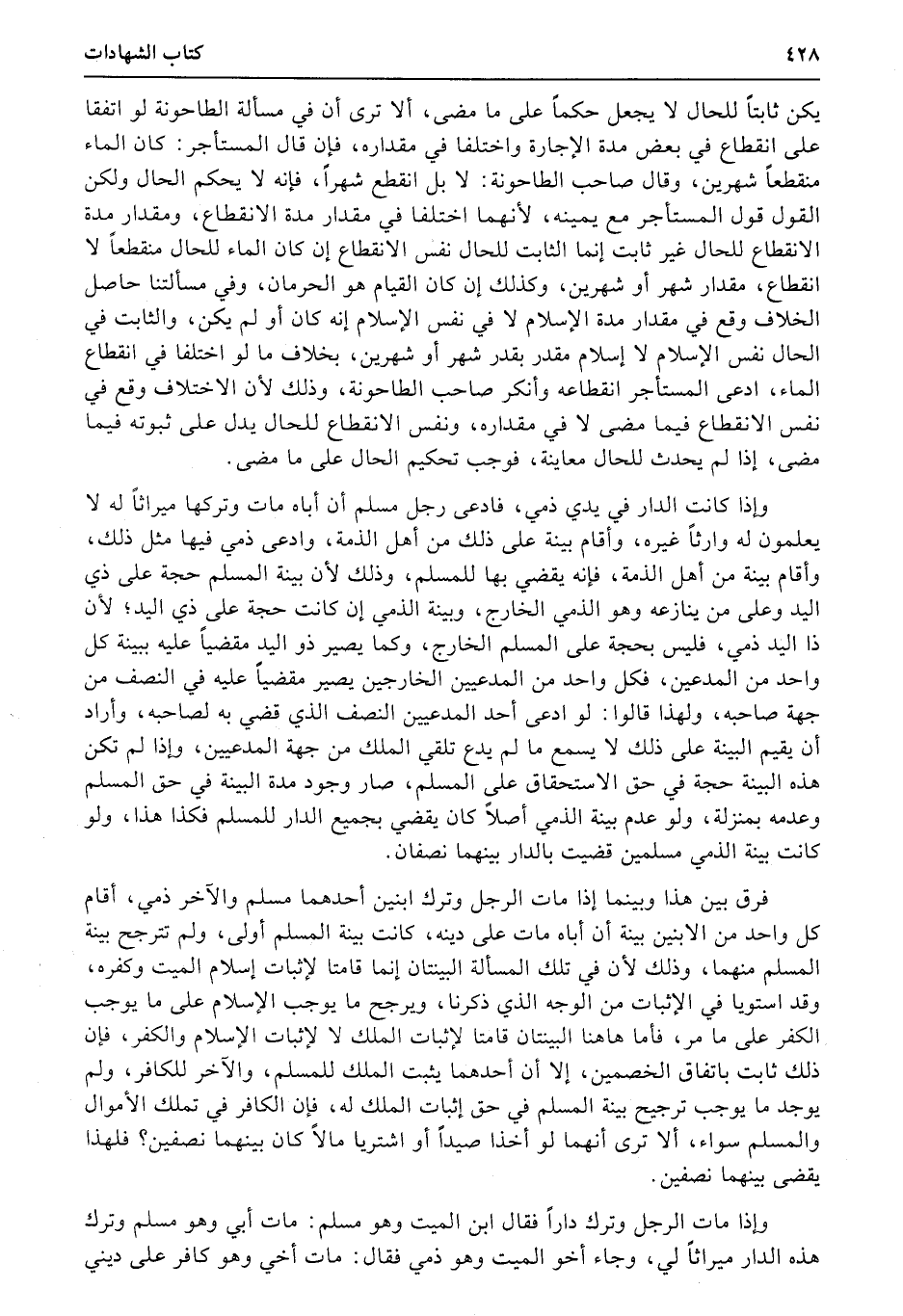وإذا مات الرجل وترك داراً فقال ابن الميت وهو مسلم: مات أبي وهو مسلم وترك هذه الدار ميراثاً لي، وجاء أخ الميت وهو ذمي فقال: مات أخي وهو كافر على ديني