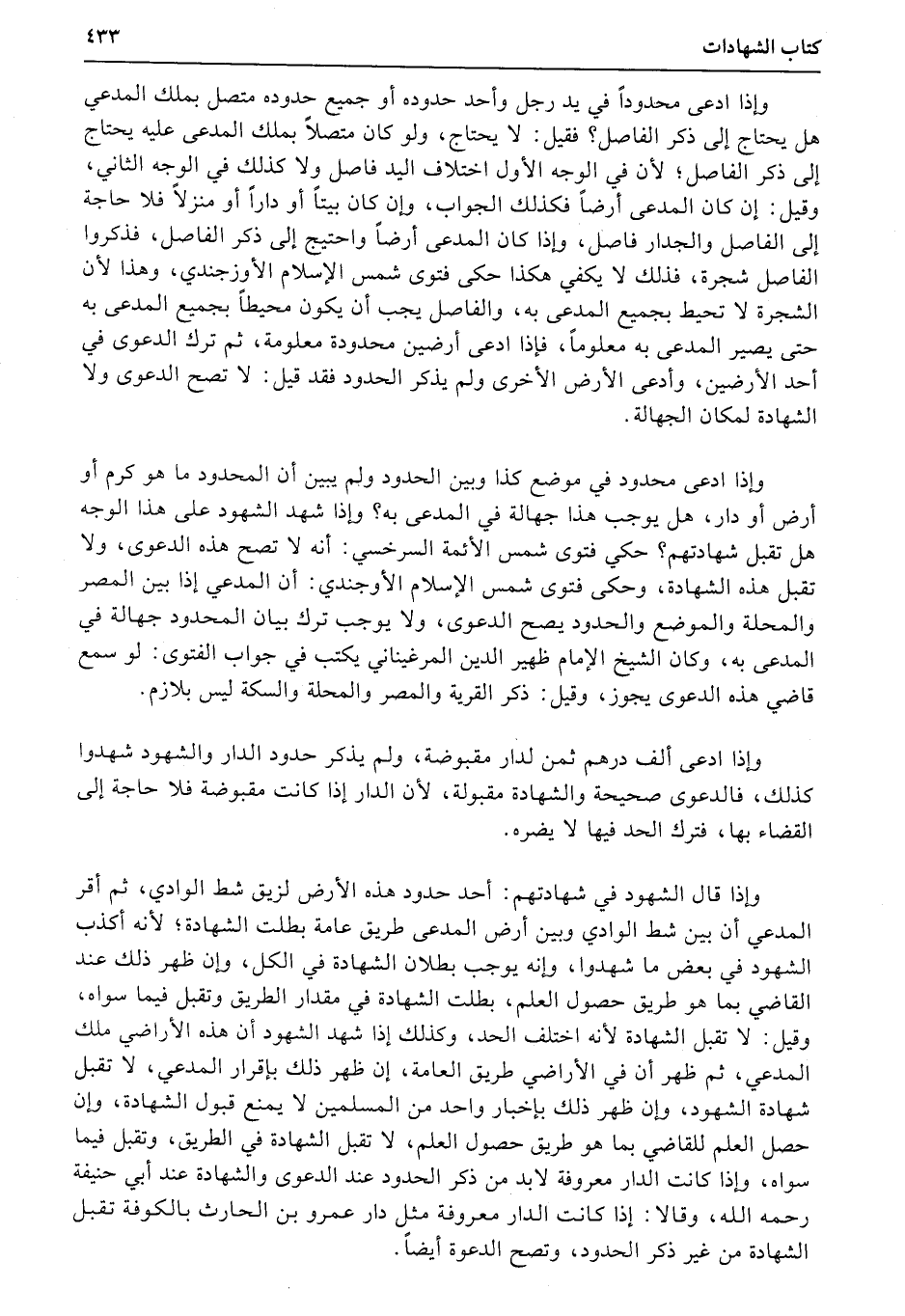 وإذا قال الشهود في شهادتهم: أحد حدود هذه الأرض لزيق شط الوادي، ثم أقر المدعي أن بين شط الوادي وبين أرض المدعى طريق عامة بطلت الشهادة؛ لأنه أكذب الشهود في بعض ما شهدوا، وإنه يوجب بطلان الشهادة في الكل، وإن ظهر ذلك عند القاضي بما هو طريق حصول العلم، بطلت الشهادة في مقدار الطريق وتقبل فيما سواه، وقيل: لا تقبل الشهادة لأنه اختلف الحد، وكذلك إذا شهد الشهود أن هذه الأراضي ملك المدعي، ثم ظهر أن في الأراضي طريق العامة، إن ظهر ذلك بإقرار المدعي، لا تقبل شهادة الشهود، وإن ظهر ذلك بإخبار واحد من المسلمين لا يمنع قبول الشهادة، وإن حصل العلم للقاضي بما هو طريق حصول العلم، لا تقبل الشهادة في الطريق، وتقبل فيما سواه، وإذا كانت الدار معروفة لابد من ذكر الحدود عند الدعوى والشهادة عند أبي حنيفة رحمه الله، وقالا: إذا كانت الدار معروفة مثل دار عمرو بن الحارث بالكوفة تقبل الشهادة من غير ذكر الحدود، وتصح الدعوة أيضاً.Y
